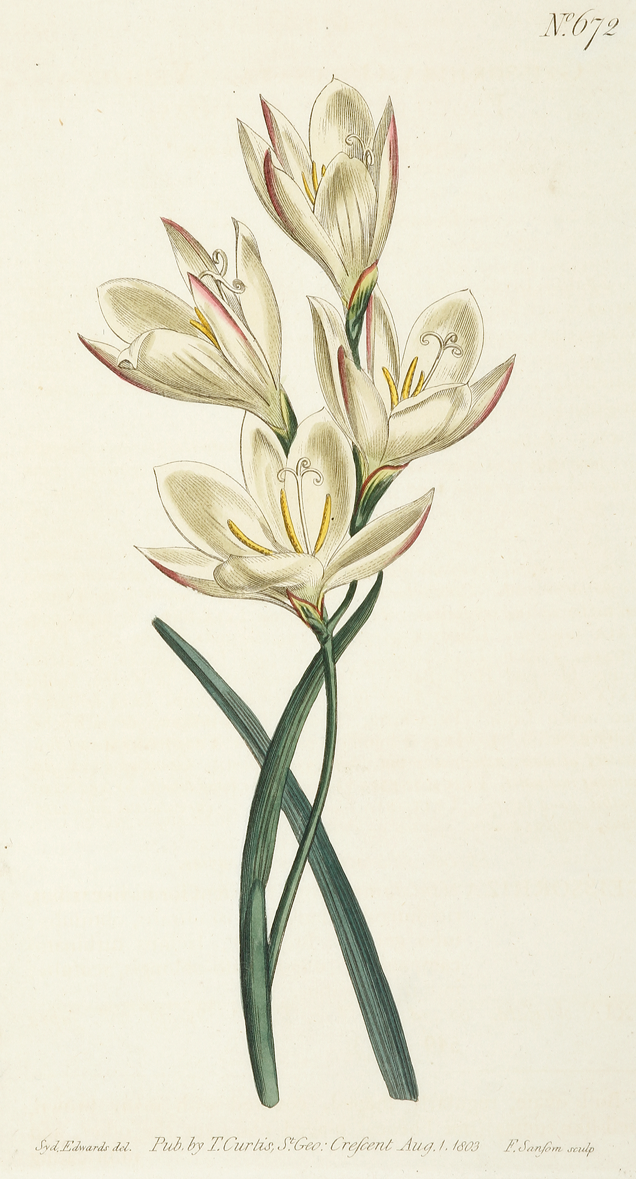 Initially worked for Curtis’s Botanical Magzine, until a dispute with the publishers when he started his own rival magazine The Botanical Register. He was born in Monmouthshire, a from an early age demonstrated a precocious talent for drawing and when only 11 years old had copied plates from Flora Londinensis. A friend of William Curtis, the publisher visited the Edwards and recommended the boy to Curtis. Curtis proceeded to have Edwards trained in both botany and botanical illustration. Edwards was a prolific talent and between 1787 and 1815 he produced over 1,700 watercolours for Curtis’s Botanical Magazine. He established The Botanical Register in 1815 after a disagreement with John Sims, Curtis’s editor.