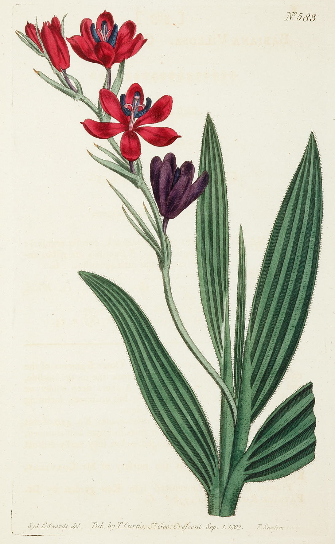 Initially worked for Curtis’s Botanical Magzine, until a dispute with the publishers when he started his own rival magazine The Botanical Register. He was born in Monmouthshire, a from an early age demonstrated a precocious talent for drawing and when only 11 years old had copied plates from Flora Londinensis. A friend of William Curtis, the publisher visited the Edwards and recommended the boy to Curtis. Curtis proceeded to have Edwards trained in both botany and botanical illustration. Edwards was a prolific talent and between 1787 and 1815 he produced over 1,700 watercolours for Curtis’s Botanical Magazine. He established The Botanical Register in 1815 after a disagreement with John Sims, Curtis’s editor.