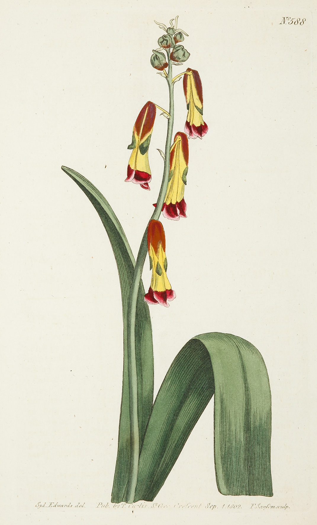 Initially worked for Curtis’s Botanical Magazine, until a dispute with the publishers when he started his own rival magazine The Botanical Register. He was born in Monmouthshire, a from an early age demonstrated a precocious talent for drawing and when only 11 years old had copied plates from Flora Londinensis. A friend of William Curtis, the publisher visited the Edwards and recommended the boy to Curtis. Curtis proceeded to have Edwards trained in both botany and botanical illustration. Edwards was a prolific talent and between 1787 and 1815 he produced over 1,700 watercolours for Curtis’s Botanical Magazine. He established The Botanical Register in 1815 after a disagreement with John Sims, Curtis’s editor.