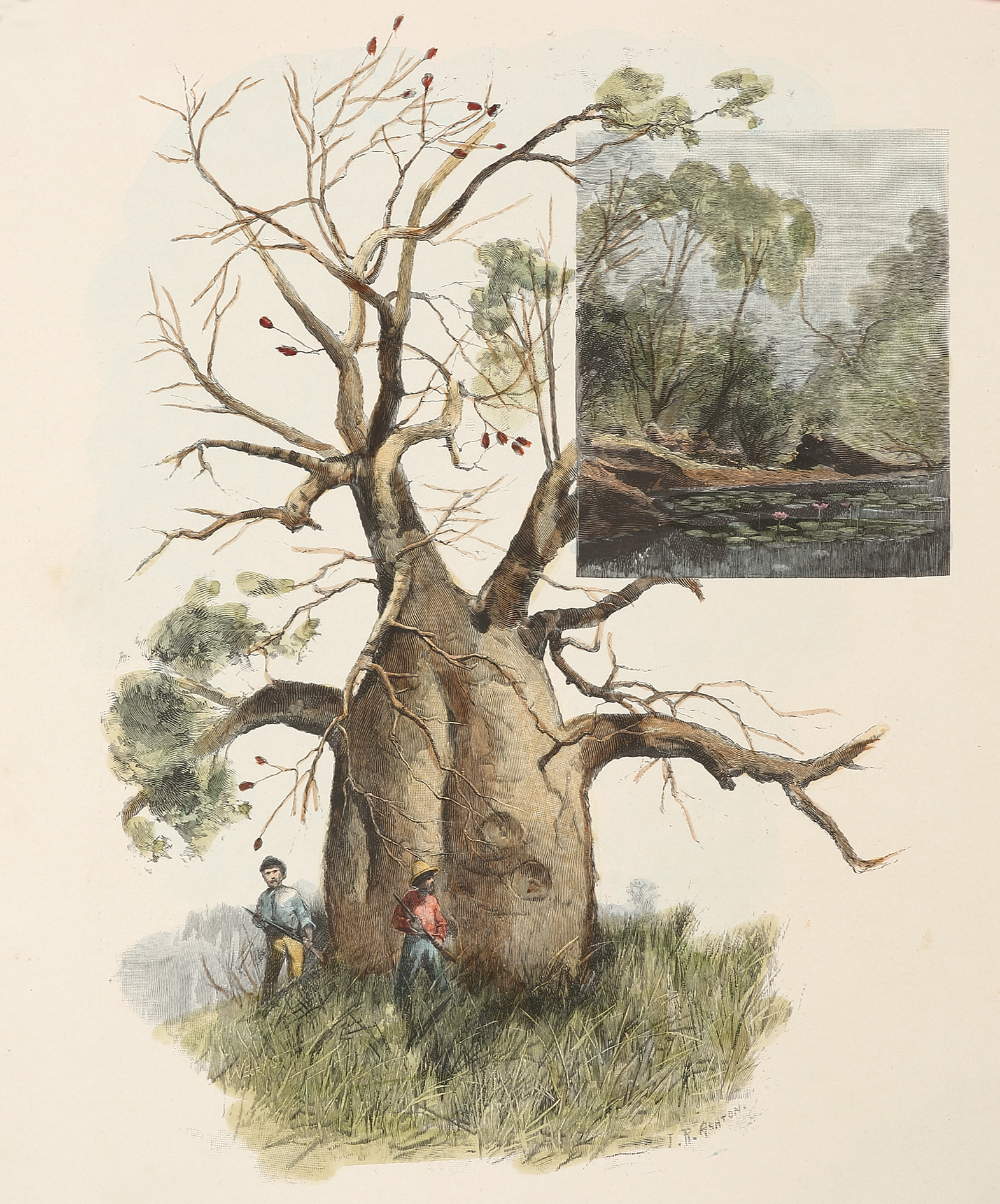 Scarce c.19th hand coloured engraving of a Baobab in the Kimberley.