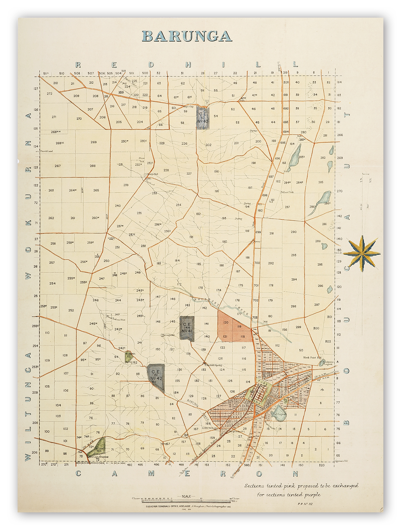 Rare map of the Hundred of Barunga which covers Snowtown and the area north.