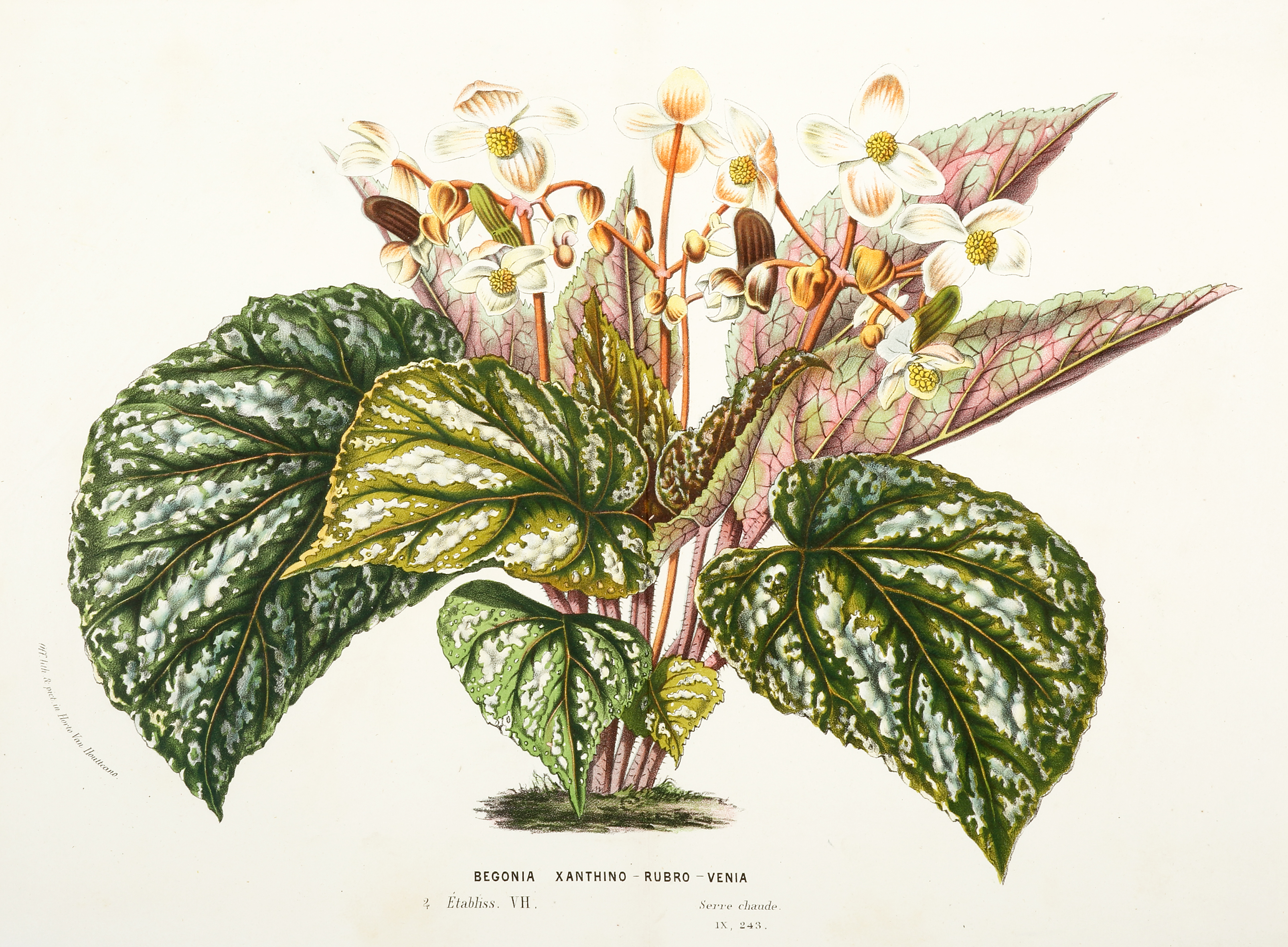 Begonia Xanthino - Rubro - Venia. - Antique Print from 1883
