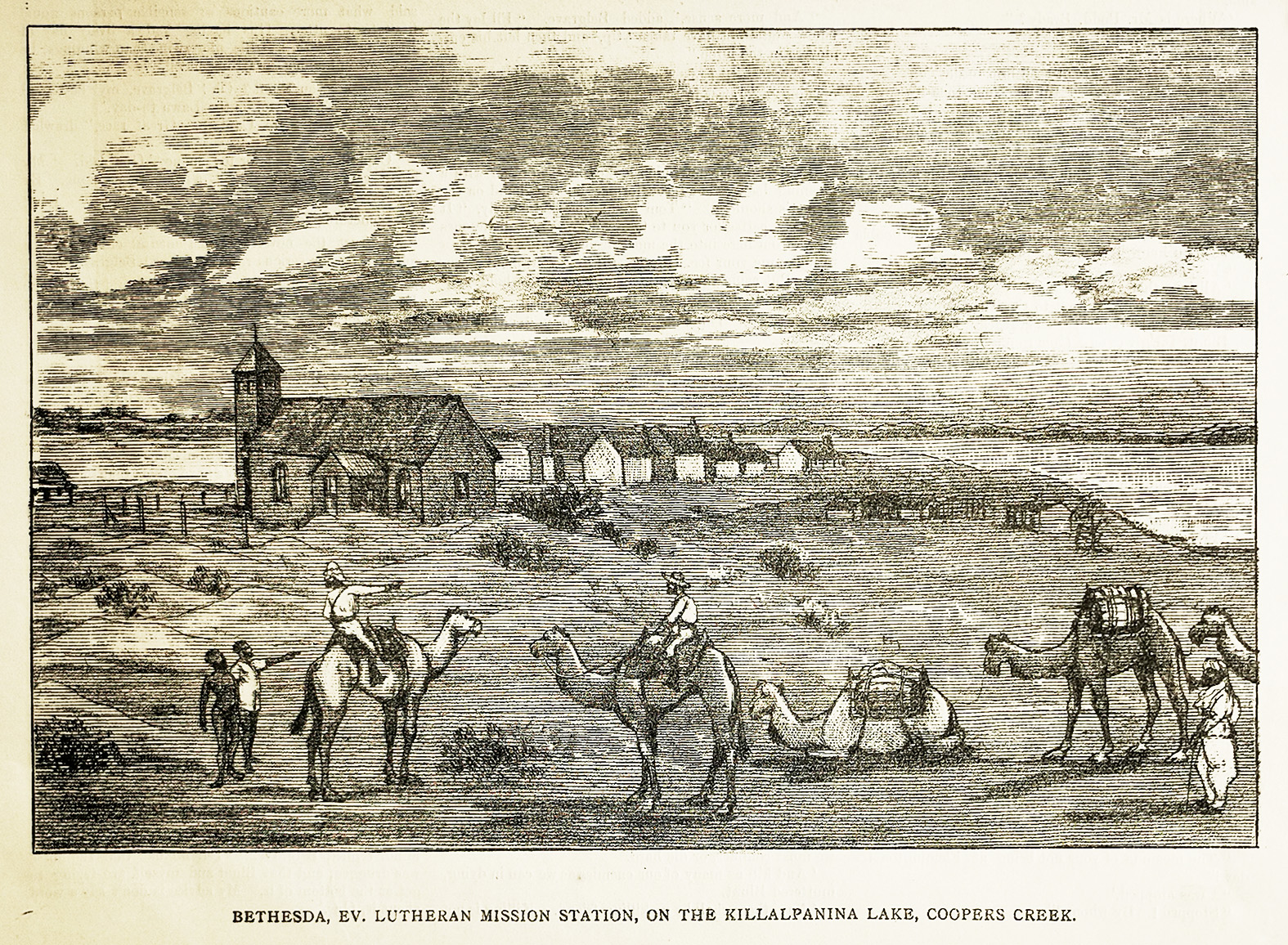 Very rare colonial engraving of Killalpaninna Mission, or Bethesda Mission, was a Lutheran mission for Aboriginal people in northeast South Australia, the site is now located in the locality of Etadunna. It existed from 1866 to 1915.