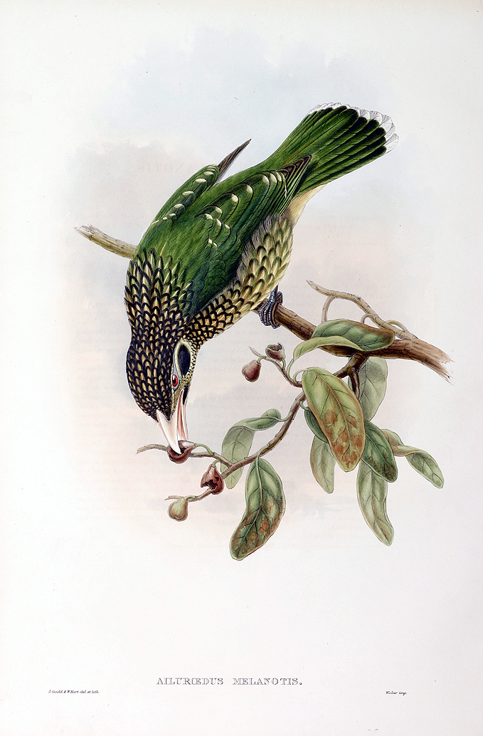 Gould was born in 1804, at Lyme Regis in Dorset. In 1818 his father was appointed a foreman gardener at the Royal Gardens, Windsor Castle. As a youth Gould also trained at these gardens and became an expert in taxidermy. In 1825 Gould moved to London and set himself up as a self-employed taxidermist. He was the first known taxidermist to have received royal patronage after preserving a Thick-kneed Bustard for King George IV. Numerous orders followed from the king with the most arduous task being stuffing the famous giraffe given by the Pasha of Egypt. He met and married Elizabeth Coxen in 1827. A talented artist in her own right, Elizabeth’s drawings and lithographic skills were fundamental to the success of John Gould’s renowned publications. In 1830, he obtained a number of specimens of the exotic and little-known birds of Northern India, forming the bold idea of issuing a book about them, which was rejected by the publishers. Gould was determined to issue the book himself at his own expense and so he arranged for his talented wife to draw and lithograph the plates form his own sketches. He persuaded N.A. Vigors to write the text for him and then set about getting subscribers for his publication. At this, he was spectacularly successful and this list was headed by Victoria (Queen from 1837) and Prince Albert, an emperor, a king, three princes and nine dukes. The resulting book, A Century of Birds… from the Himalaya Mountains, was published in 1832. This folio size (550mm x 380mm) was to become his format for all his great works. Encouraged by the response to his first book, Gould set about on a more ambitious project: an attempt to illustrate all of the birds of Europe. He engaged Edward Lear to share the job of illustrating the work with Elizabeth and between them they produced 449 plates for the Birds of Europe which was completed in 1837. This established Gould not only in the eyes of the public but also within the scientific community. He then sailed to Australia in May 1838 with his wife and eldest son, aged 7, a young nephew, a man-servant and a maid-servant, and his collector John Gilbert. He stayed in Australia for two years leaving from Sydney on 9 April 1840. On his return he took on his greatest work, The Birds of Australia begun in London on 1 December 1840. The final parts, making a total of thirty-six, appeared in 1848. They were bound in seven volumes and the cost to subscribers was £115. A supplement volume issued in parts was completed in 1869. The Birds of New Guinea and the Adjacent Papuan Islands, Gould’s last great work, was completed after his death by Richard Bowdler Sharpe. Gould prepared the first twelve of the 25 original parts of the work, while Sharpe, Gould’s protégé and devoted friend, was responsible for the remainder of the monograph. Sharpe was more than forty years junior to Gould, whom he had met when he was only fifteen, and they both shared a passionate interest in ornithology. In his last years, although an invalid and often in pain, Gould was always pleased when Sharpe visited him to look at his collection of skins and discuss the latest bird discoveries. No other ornithologist can claim to have discovered and illustrated faithfully so many species of birds. The Birds of New Guinea are a fitting tribute to a long and prolific life in the field or ornithology. They are a magnificent record of the exotic world that John Gould so dearly loved, not only for the scientific value but also for his love of nature.