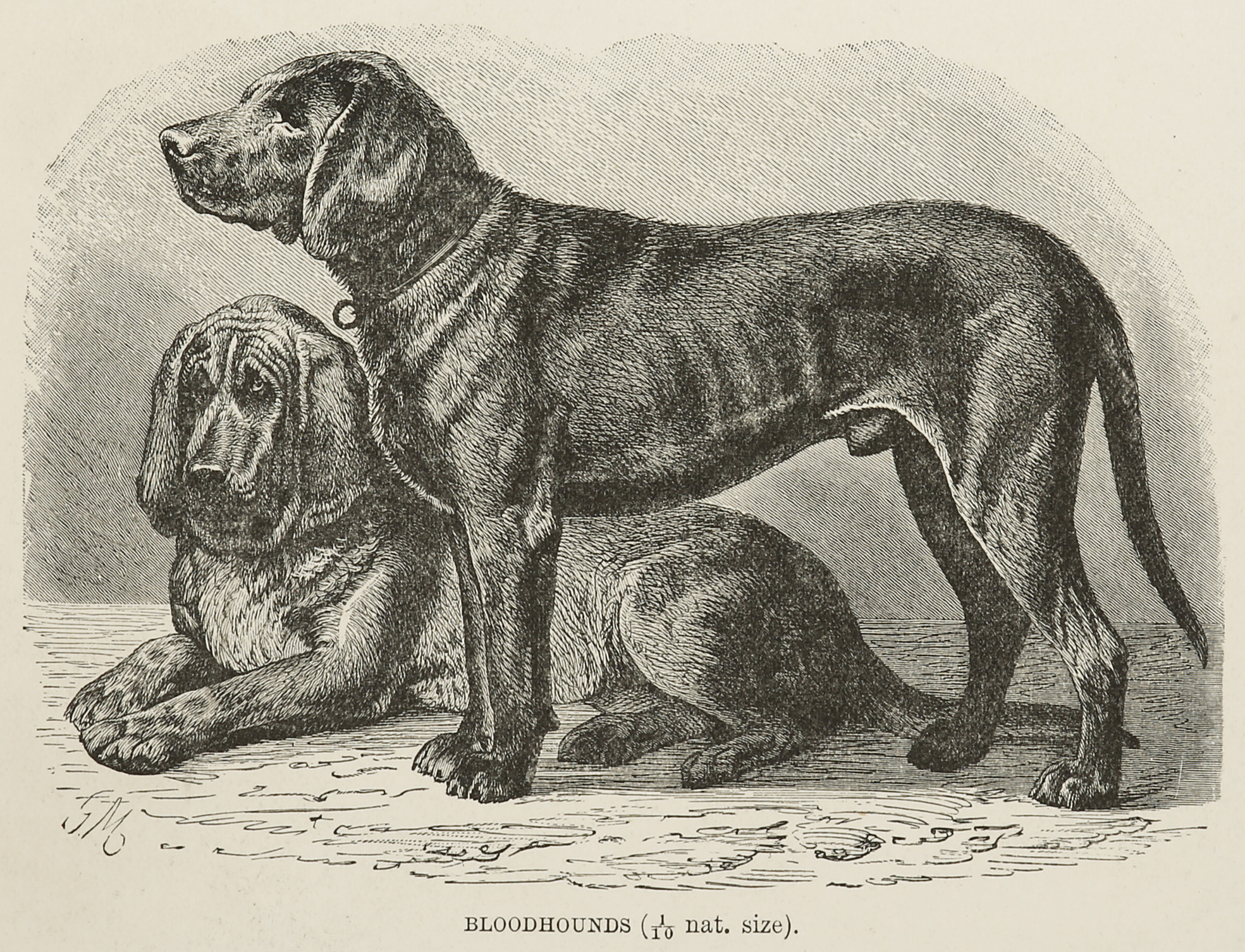 C19th engraving of a Bloodhounds.
