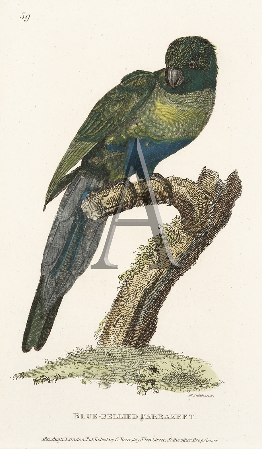 First description 3rd November 1774 This bird was brought over by Joseph Banks. Botany Bay Peter Brown. Sighting by First Fleeters April 1788 We likewise saw several Blue-Bellied Parrot. This is a very beautiful bird and is very common species in various parts of New Holland and in great plenty both at Botany Bay and Port Jackson. Port Jackson John White.