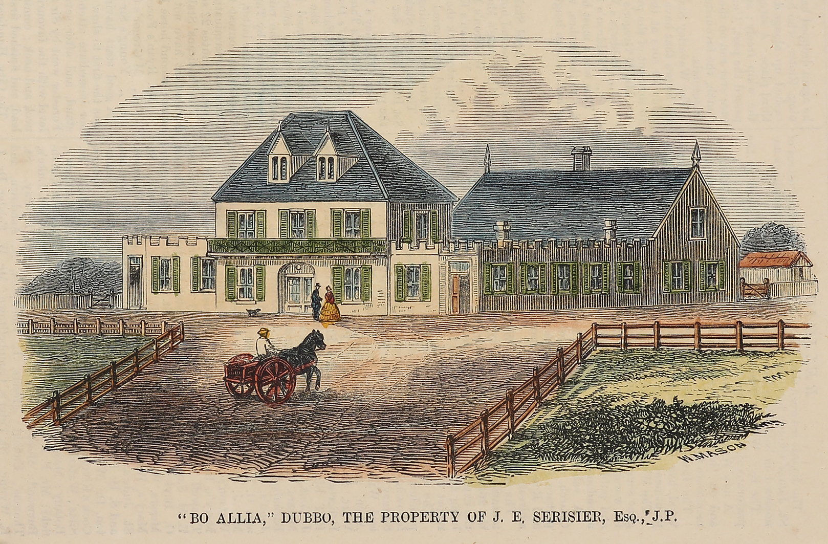 Jean Emile Serisier, (1824-1881) was a storekeeper and vigneron who settled on the site of the future town of Dubbo where he opened a general store. After he petitioned for a site for a village, land held by George Smith was selected and surveyed. Serisier bought town blocks at the first auctions in 1851.