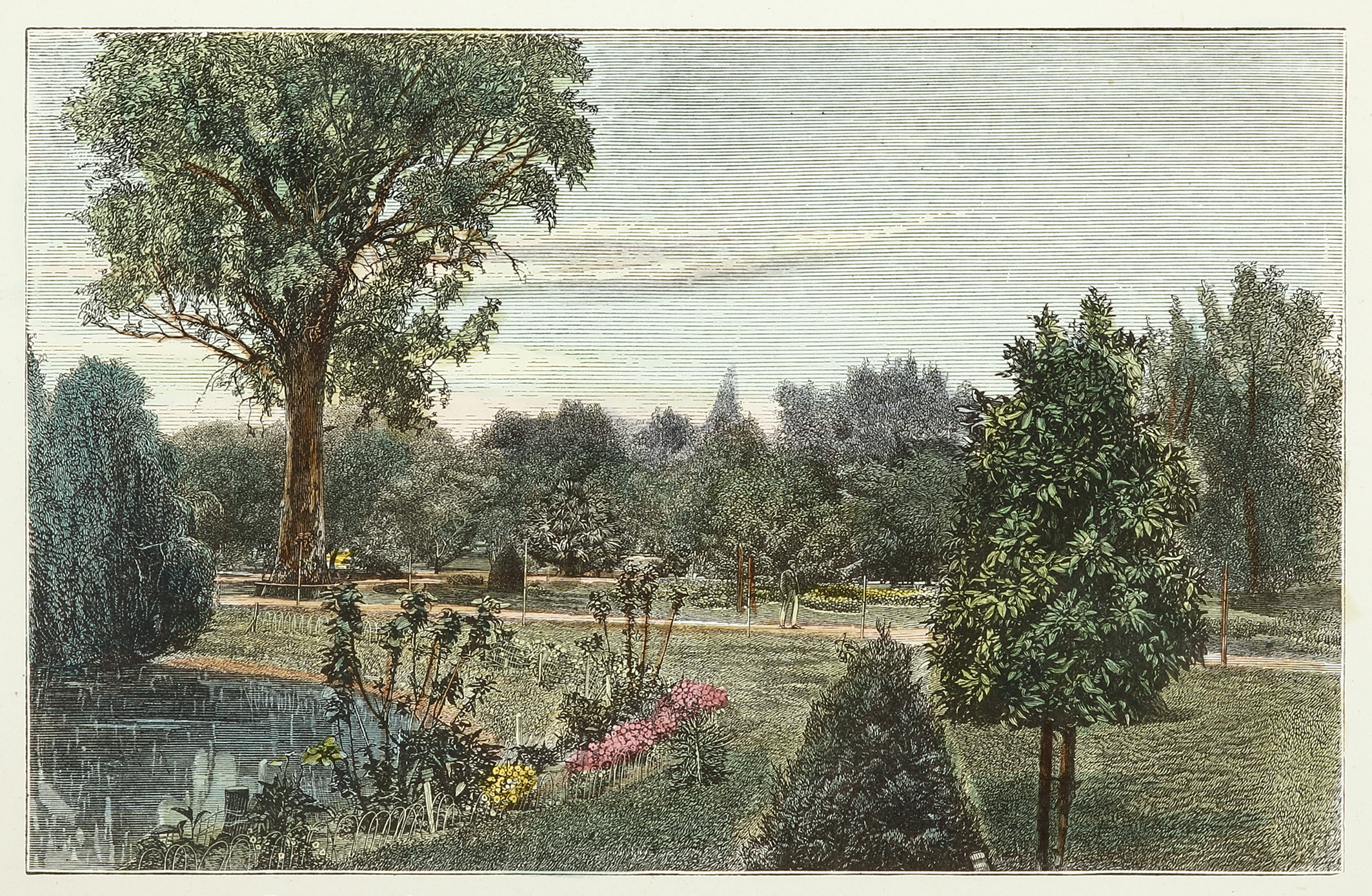 Interesting South Australia colonial image of the Adelaide Botanic Gardens, produced to promote emigration to the land rich state. Some of the images were taken from early photographs.