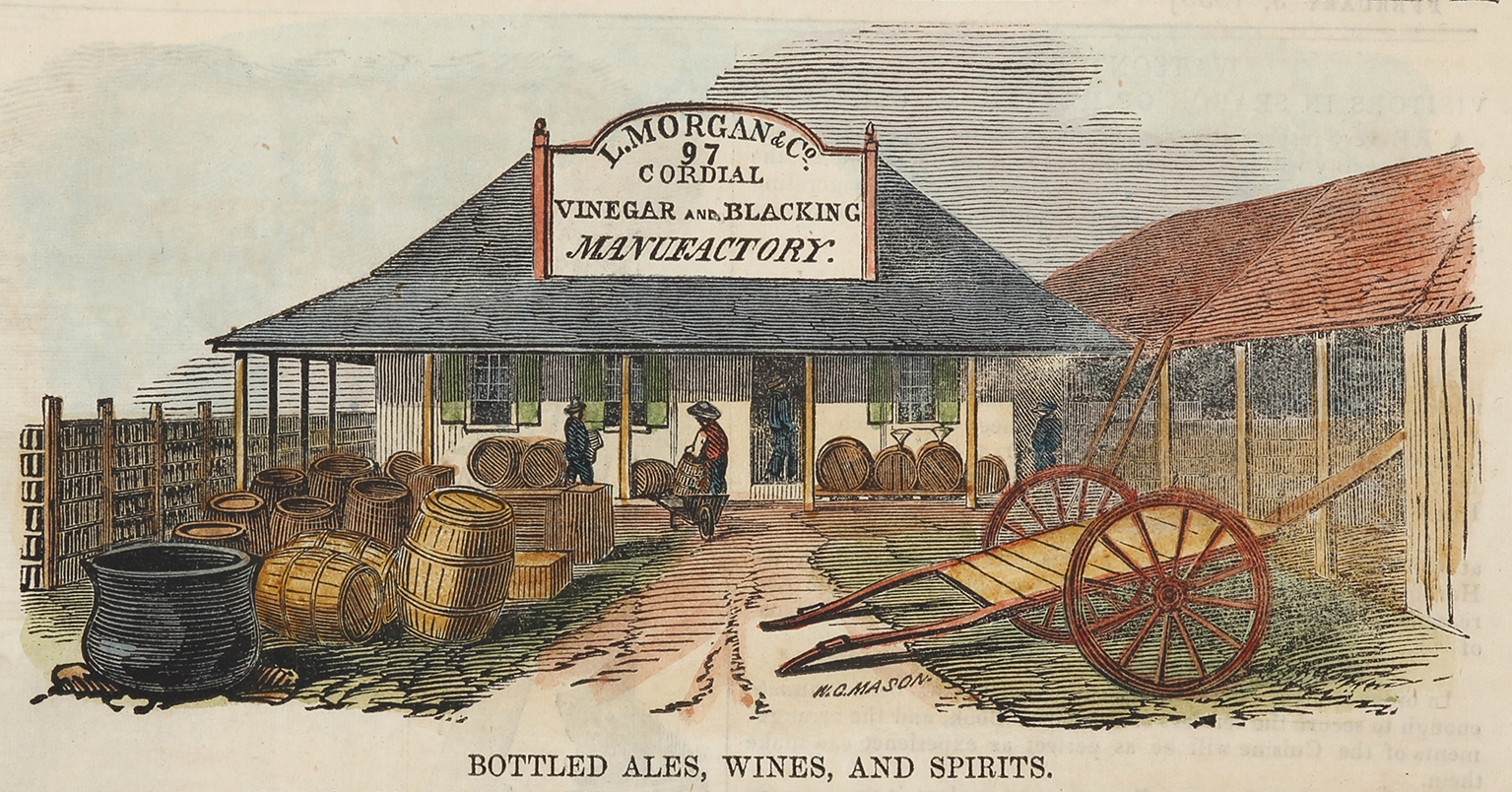 Very rare c.19th engraving of L. Morgan & Co./ 97/Cordial Vinegar and Blacking Manufactory at Pitt Street, Redfern.