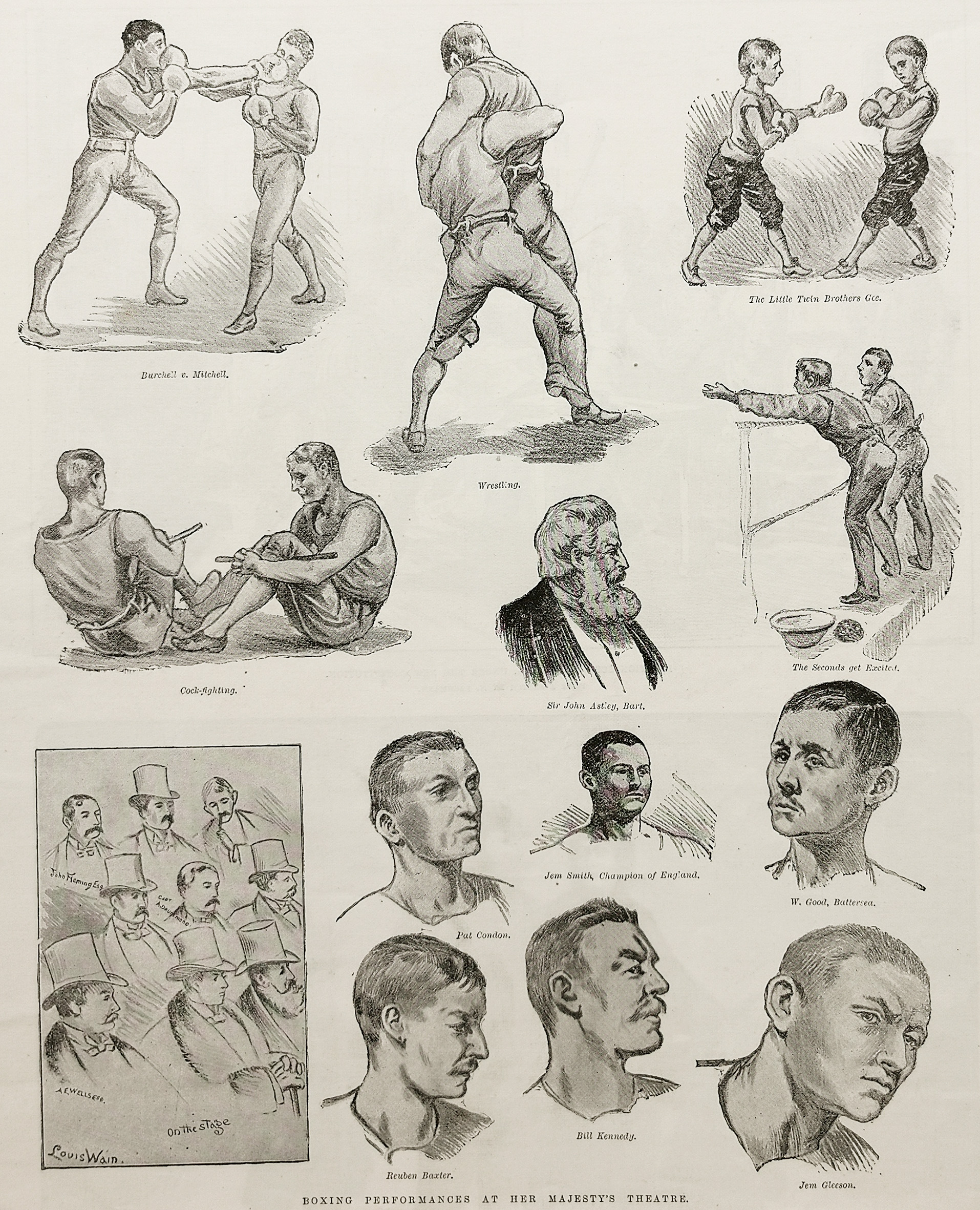 Boxing engraving by Louis Wain from the original edition of the Illustrated London News.