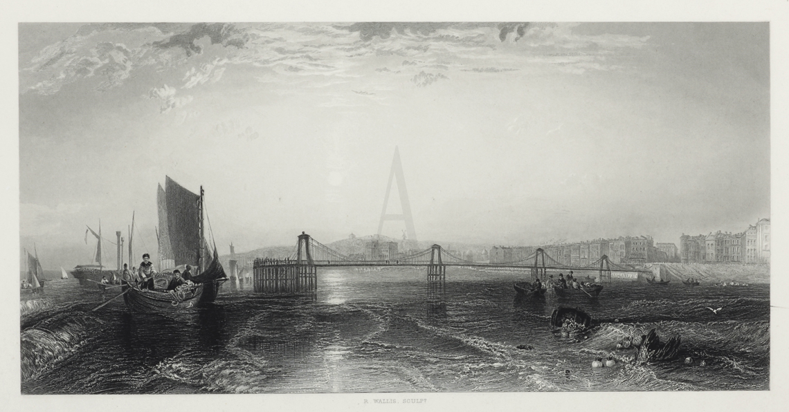The first major pier built in Brighton, England,generally known as the Chain Pier, it was designed by Captain Samuel Brown, and built in 1823.