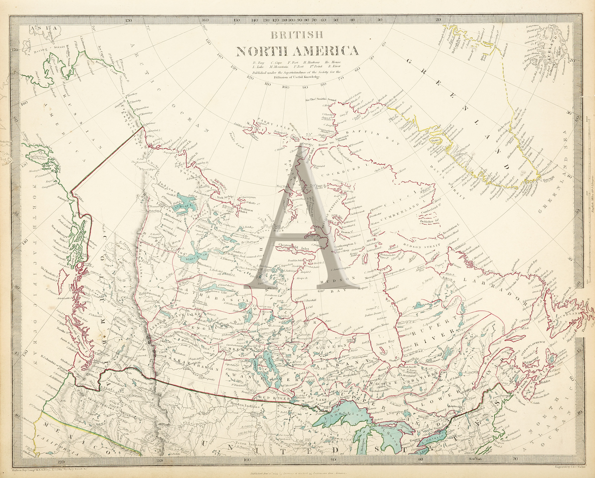 Early edition of this very detailed map of Canada published by the Society for the Diffusion of Useful Knowledge.