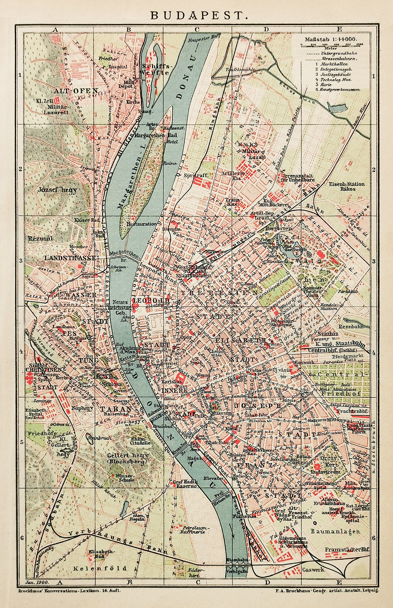 Detailed German plan of Budapest. From Brockhaus, F.A. Konversations Lexikon. Collections: National Library Australia: Bib ID 1104411
