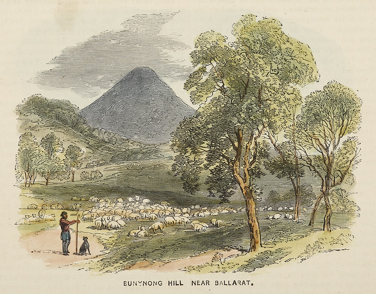 C.19th engraved view of Mount Buninyong, Victoria.