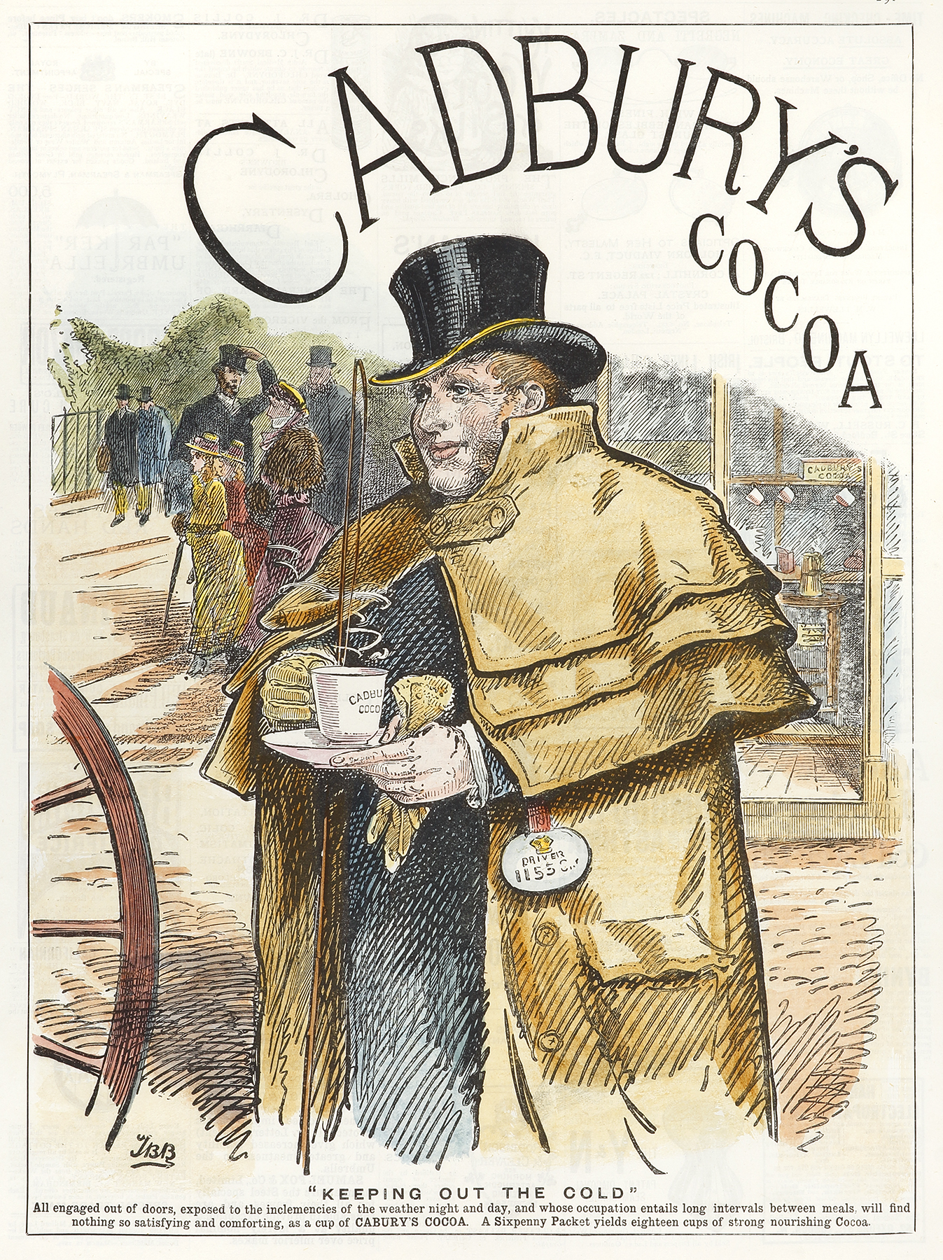 Large engraved advertisement for Cadbury’s Cocoa.