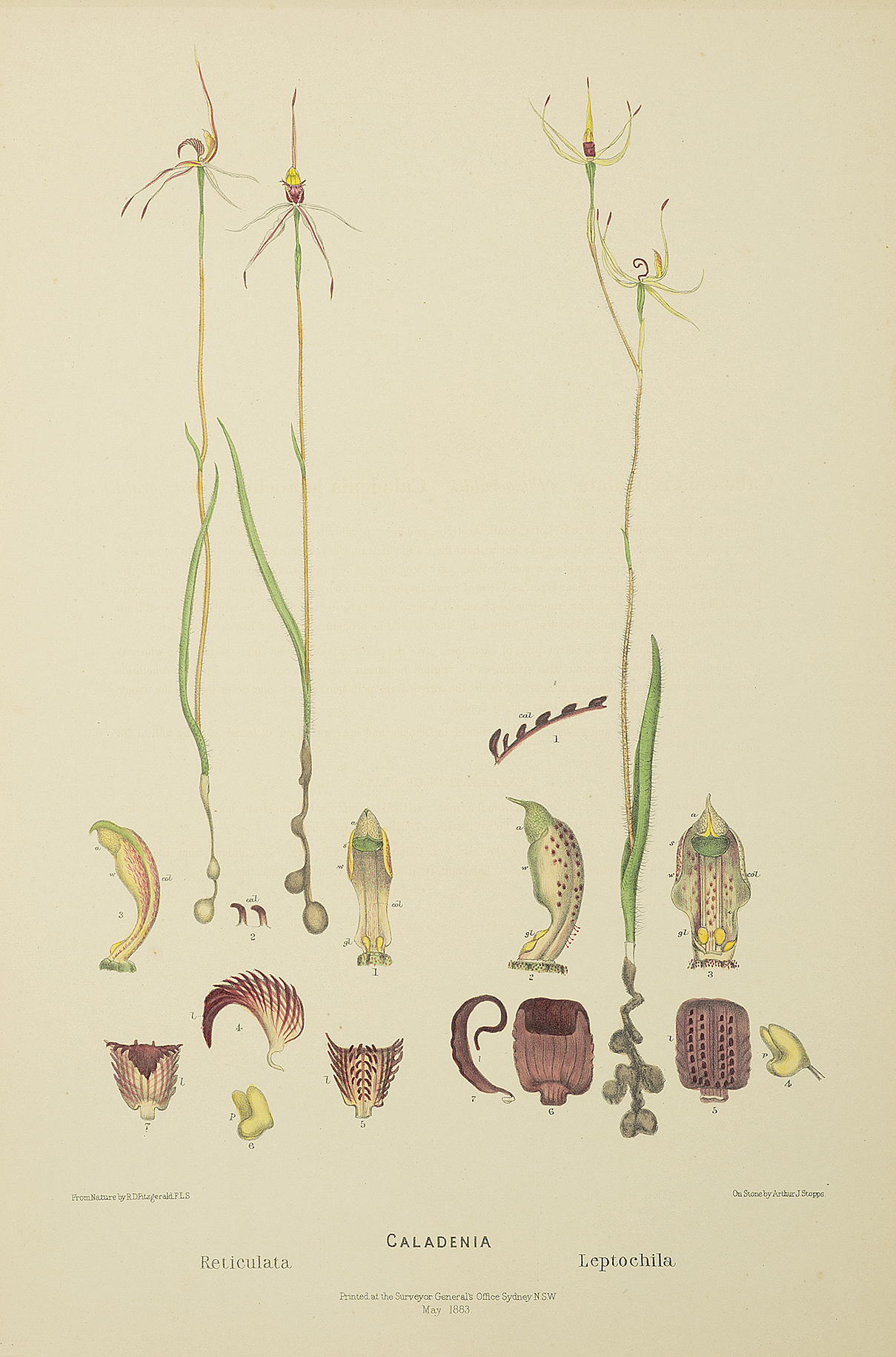 Rare lithograph, from the original edition of the first monograph on Australian orchids, by Robert Fitzgerald. The series took twenty-four years to complete (1875-1894).