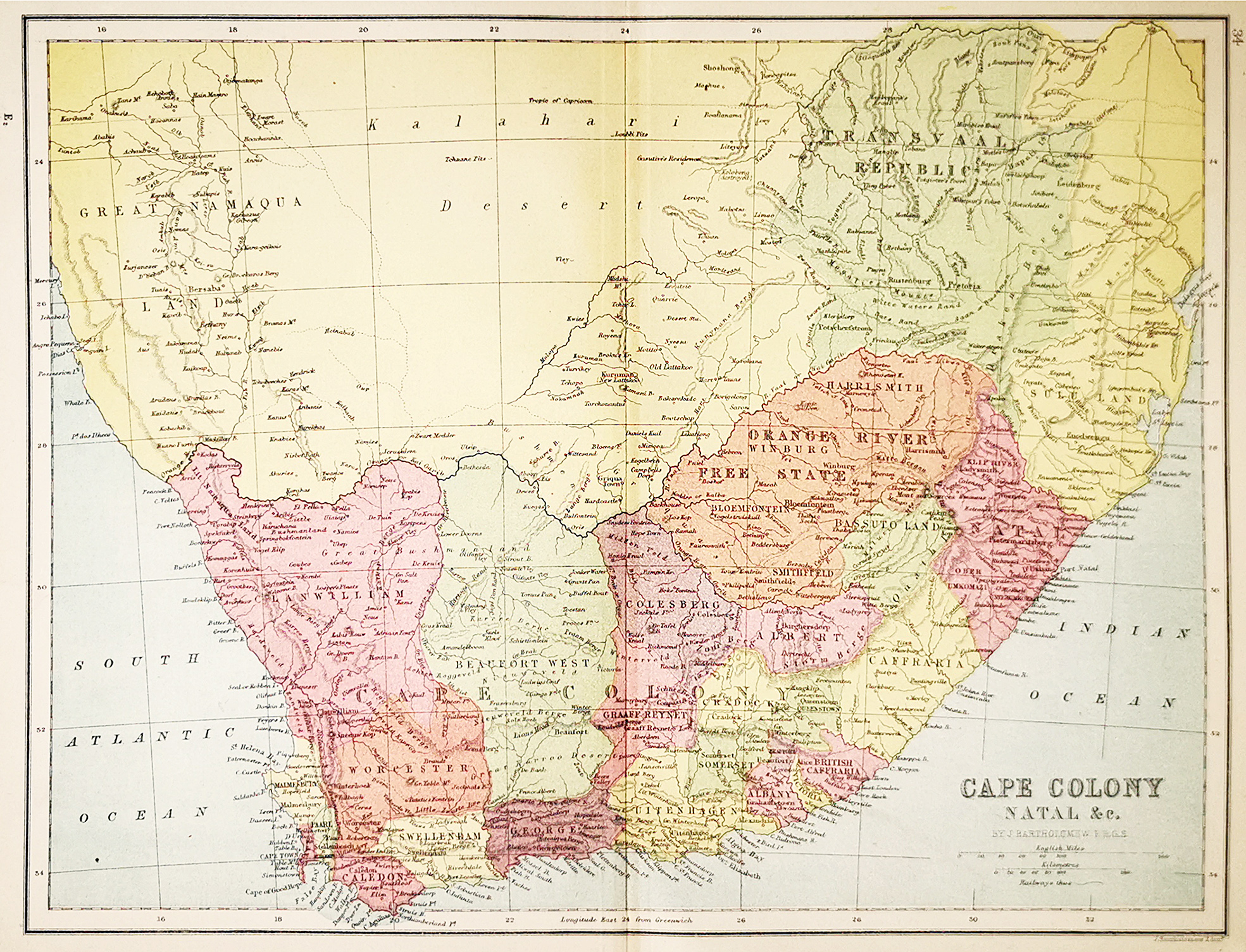 Very detailed map of South Africaby the Scottish cartographer John Bartholomew.