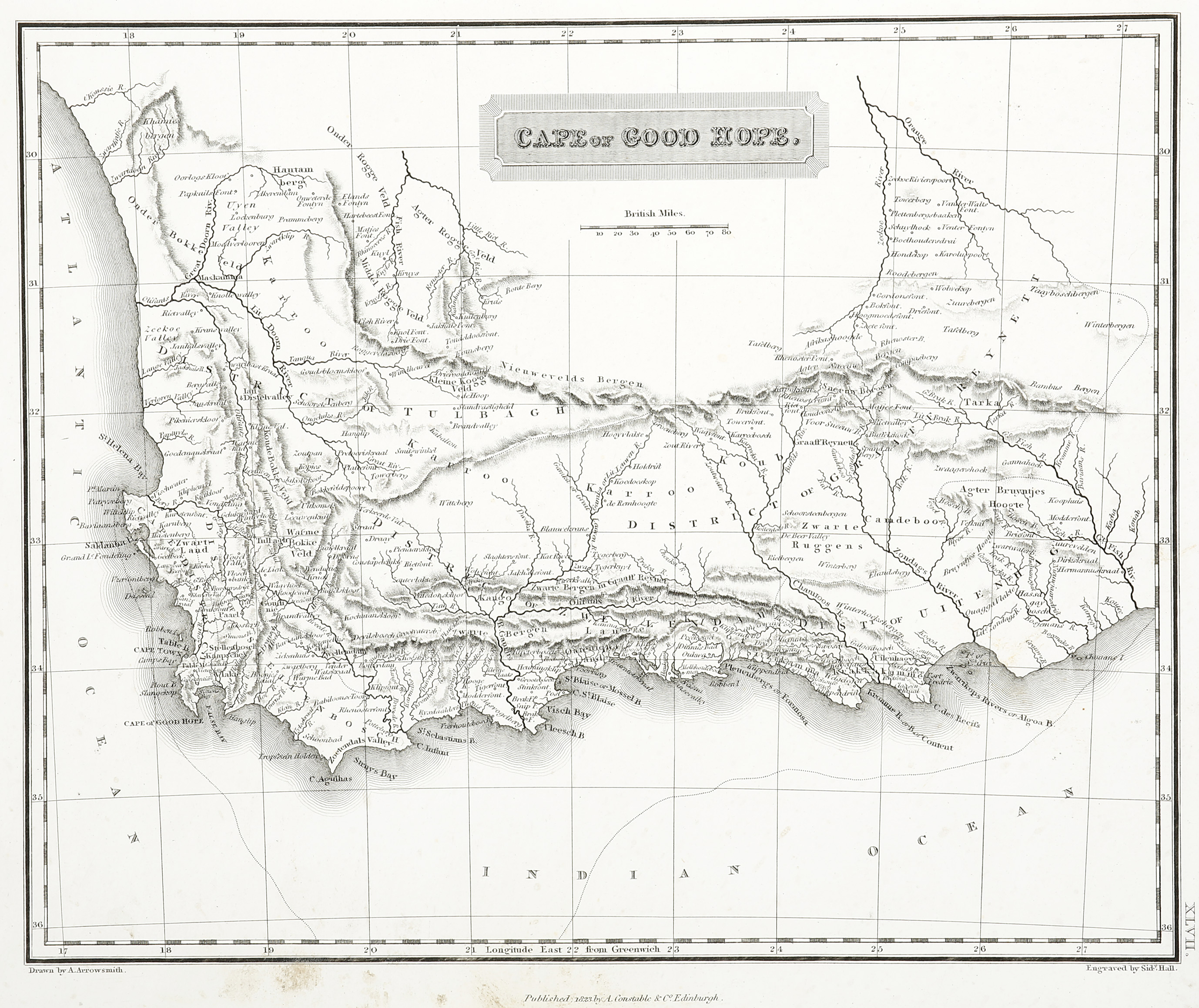 Detailed early C19th map of Cape of Good Hope, in Cape Town – South Africa, by Aaron Arrowsmith, from the greatest English mapmaker of the late C18th. From Arrowsmith, A new general atlas.