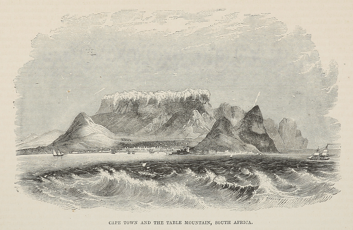 C.19th engraving of Cape Town. From W.G. Blackie’s, The Comprehensive Atlas & Geography of the World… Collections: National Library Australia: Bib ID: 1818869 State Library New South Wales: Call Numbers:TF03289 David Rumsey Collection: List No: 1589.004