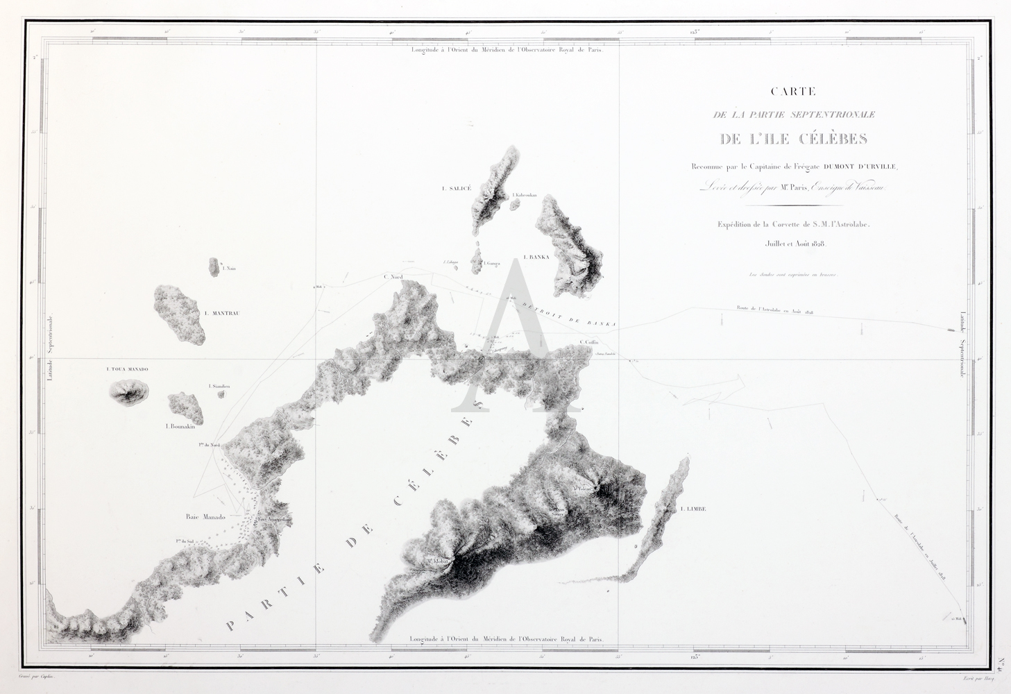 Rare chart from the voyage of the Astrolabe. Dumont D’Urville, French aristrocrat, navigator, geographer and naturalist. Famous for his three voyages in the following ships Coquille under Duperrey in 1822, Astrolabe in full command in 1826-29 & Astrolabe & Zelle … Read Full Description