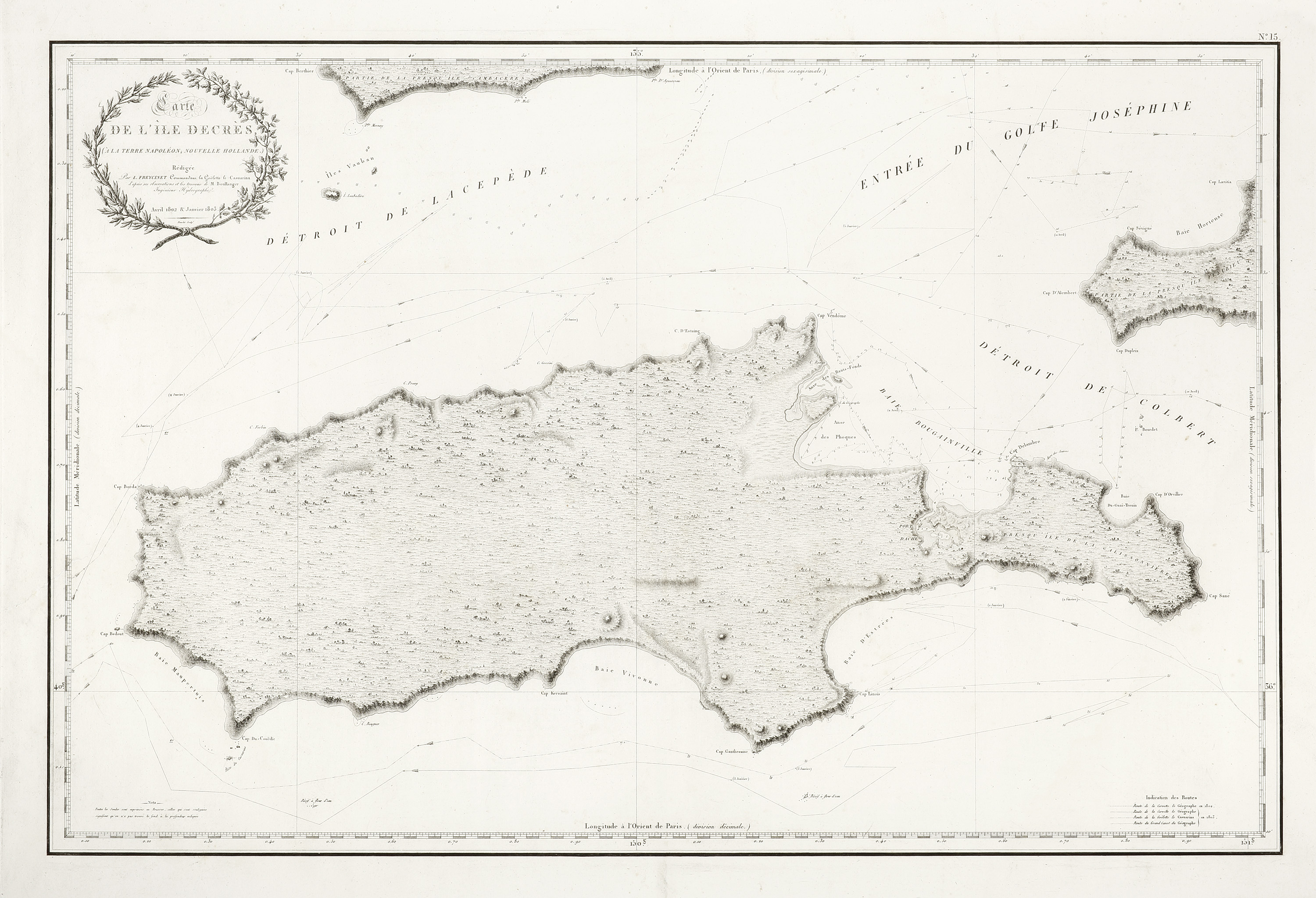 From Peron, Voyage de decouvertes aux terres australes execute par ordre de S.M.L’Empereur et Roi sur les Corvettes le Geographe, le Naturaliste, et la Goelette le Casuarina, pendant les annees 1800, 1801, 1802, 1803, & 1804.