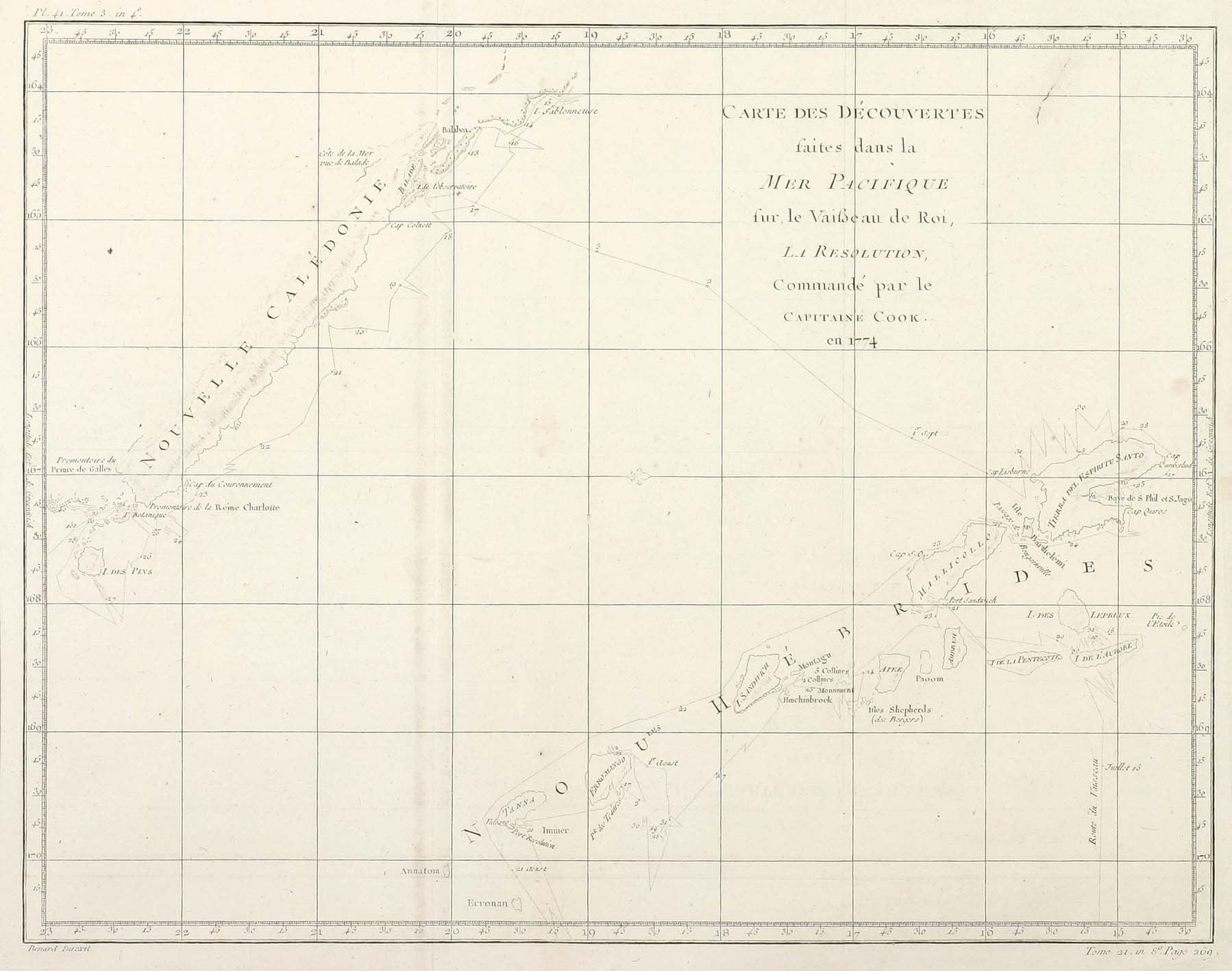 French edition of the first printed chart of New Caledonia.