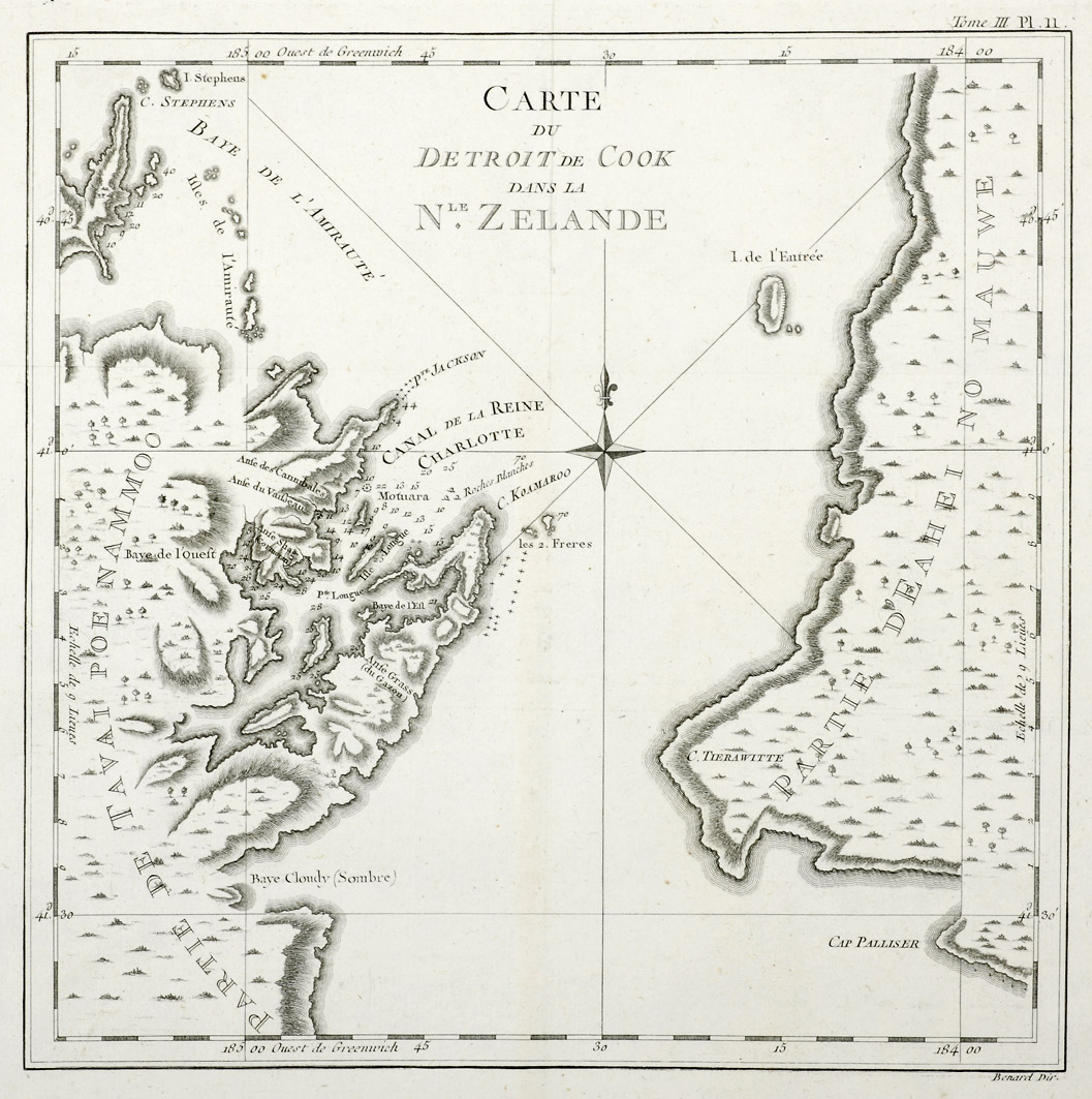 Rare map of Cook’s Strait, from the French edition of the accounts of Cook’s first voyage. published (1774) the year after the English edition (1773).