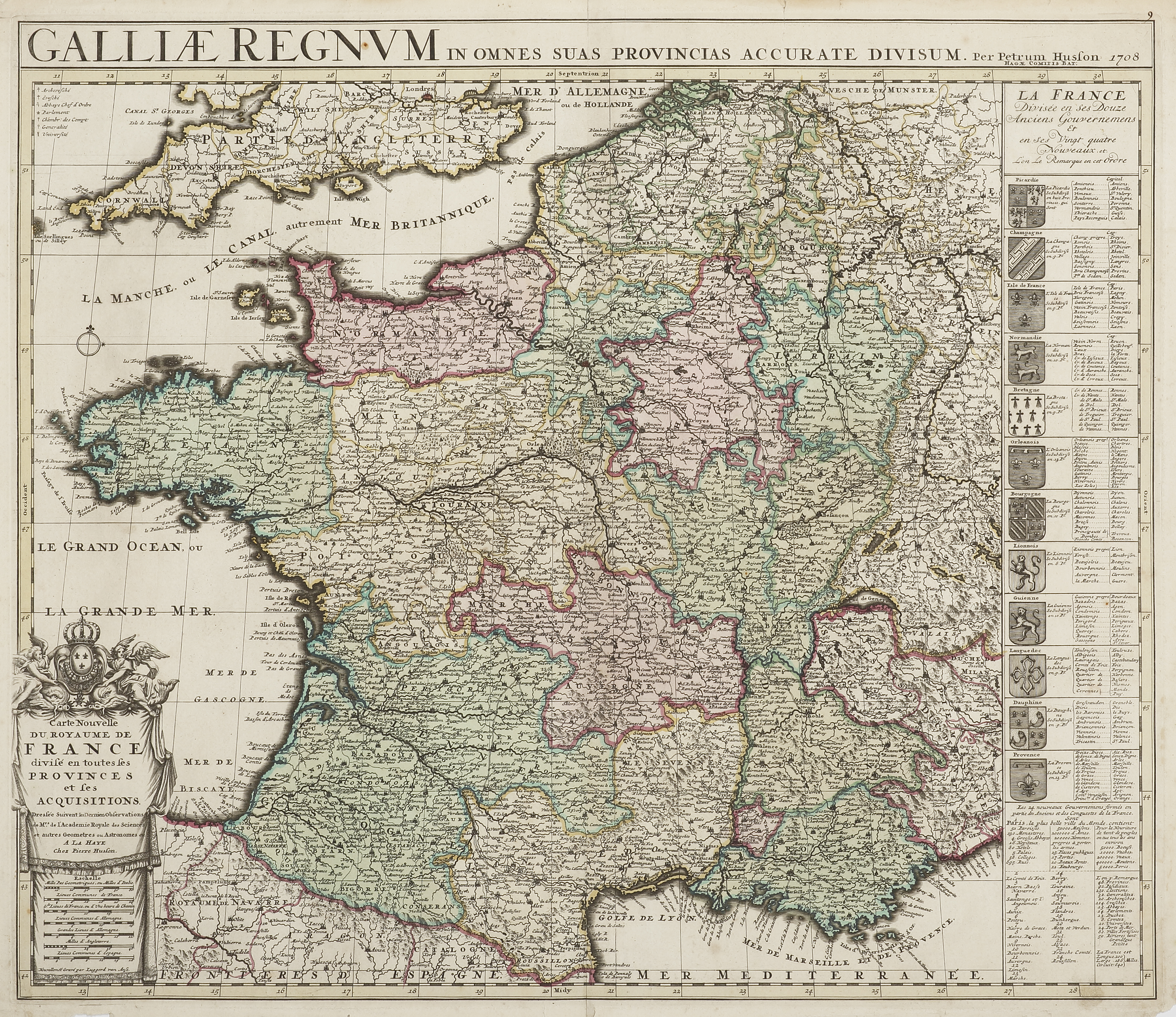 Carte nouvelle du royaume de France divisé en toutes ses provinces et ses acquisitions, dressée suivent la dernier observations de Mrs. de l’Académie royale des sciences