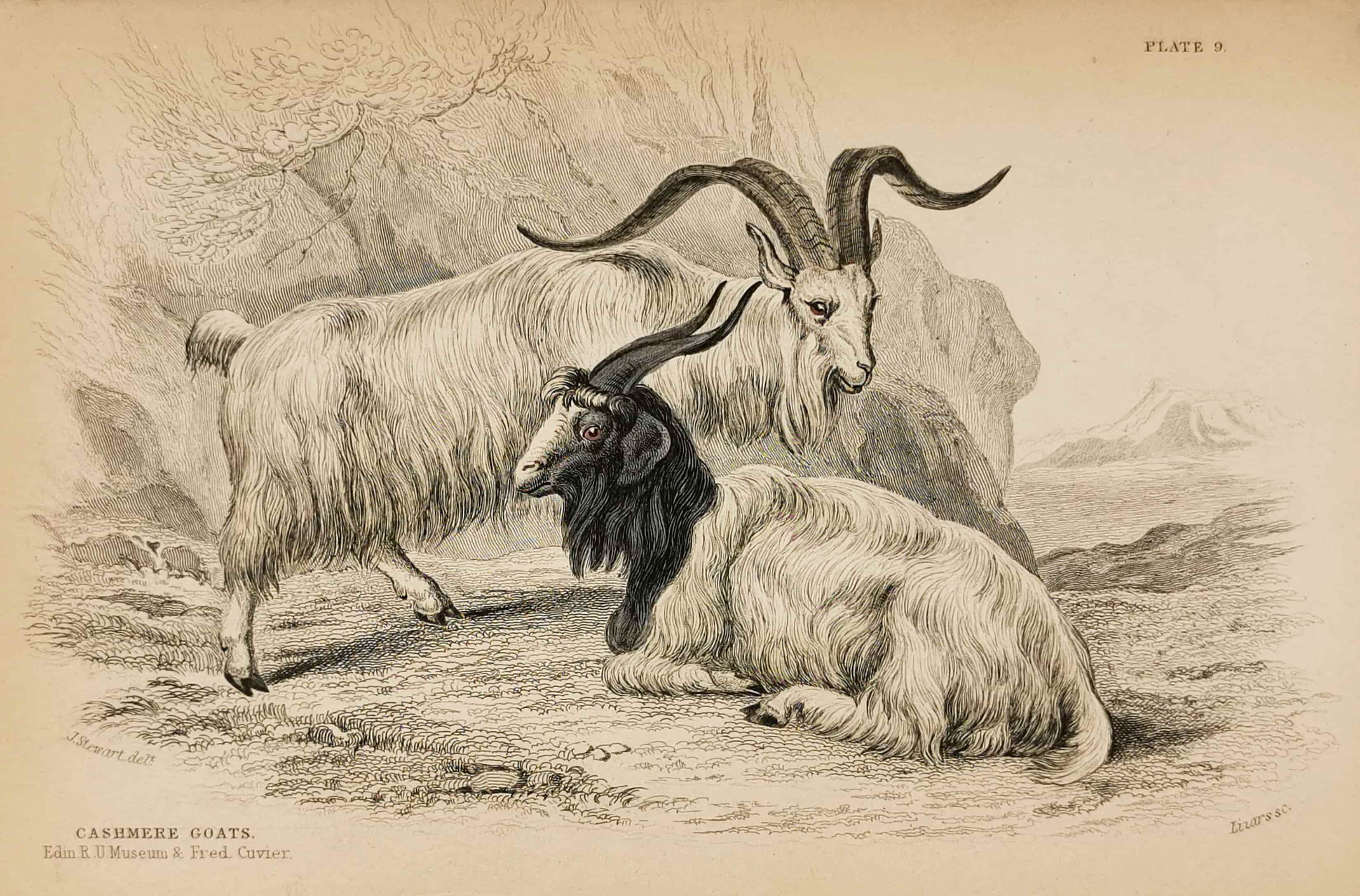 Early c.19th engraving of cashmere goats.