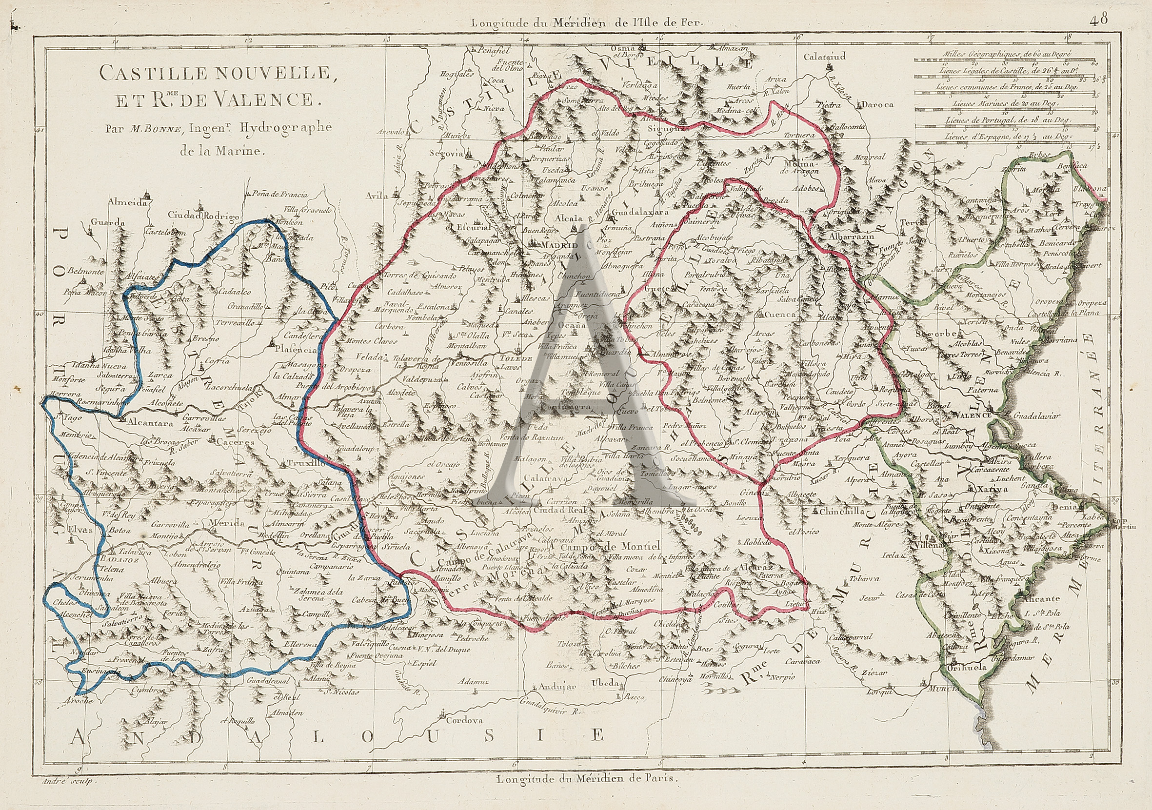 Scarce map of eastern Spain. From Bonne’s, Atlas Encyclopedique, Contenant La Geographie Ancienne, et Quelques Cartes sur La Geographie du Moyen Age, La Geographie Moderne, et les Cartes Relatives a la Geographie Physique.