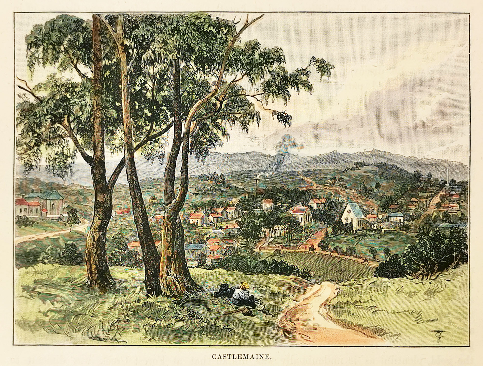 Scarce c.19th hand coloured engraved view of Castlemaine, Victoria.