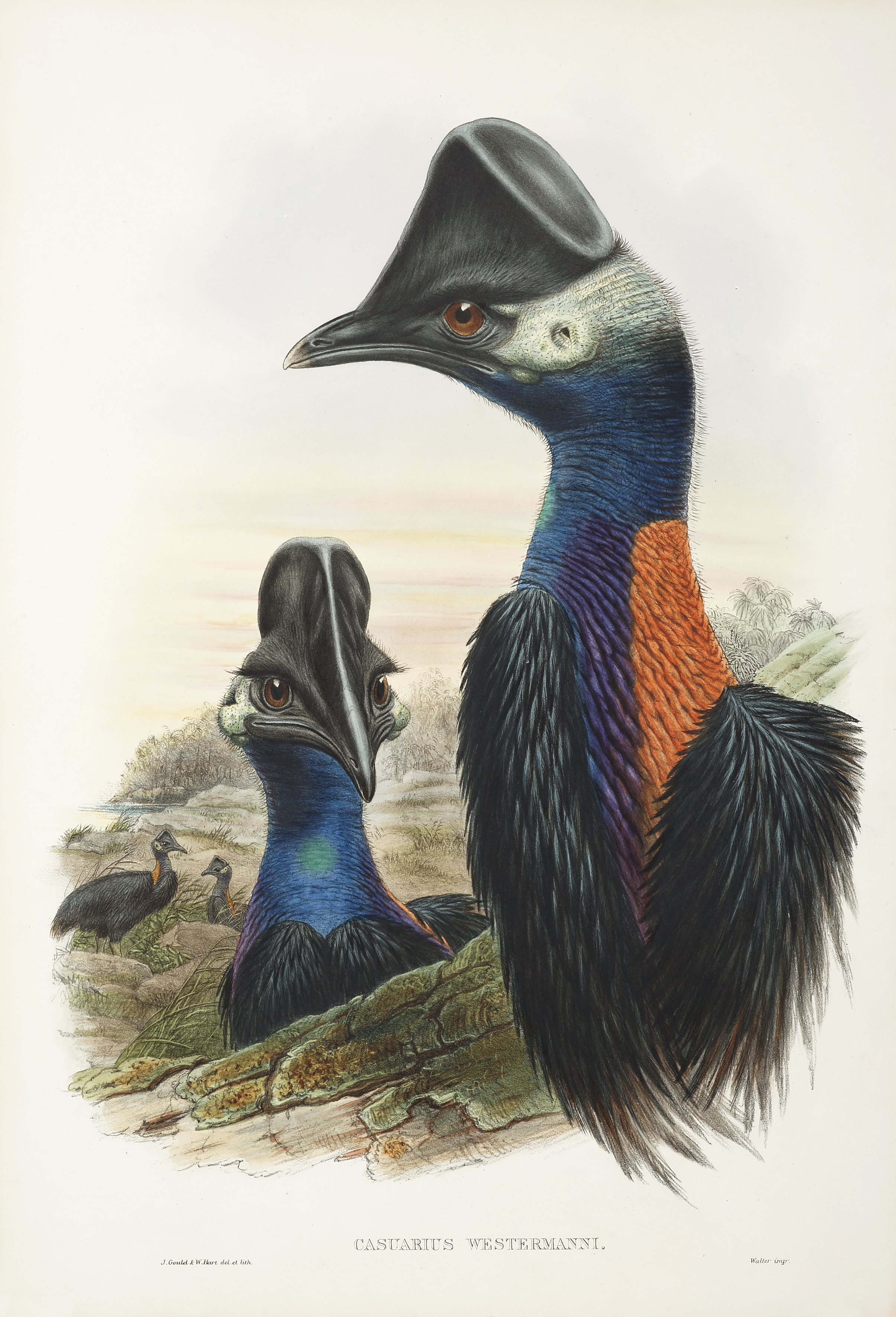 Gould common name : Westerman’s cassowary Gould binomial name: Casuarius westermanni Common name : Dwarf cassowary Binomial name : Casuarius bennetti Described : Sclater 1874 Described in the Proc. zool. Soc. Lond., 1874. 248. From a specimen collected by a … Read Full Description