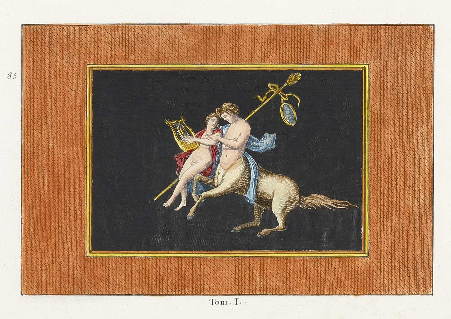 Early engraving from the series, Antiquities D’Herculanum, illustrating the most beautiful ancient paintings, and marbles, bronzes and furniture found in excavations of Herculaneum and Stabia Pompe. The discovery in 1738 and 1748 of the ruins of Herculaneum and Pompeii gave new impetus … Read Full Description