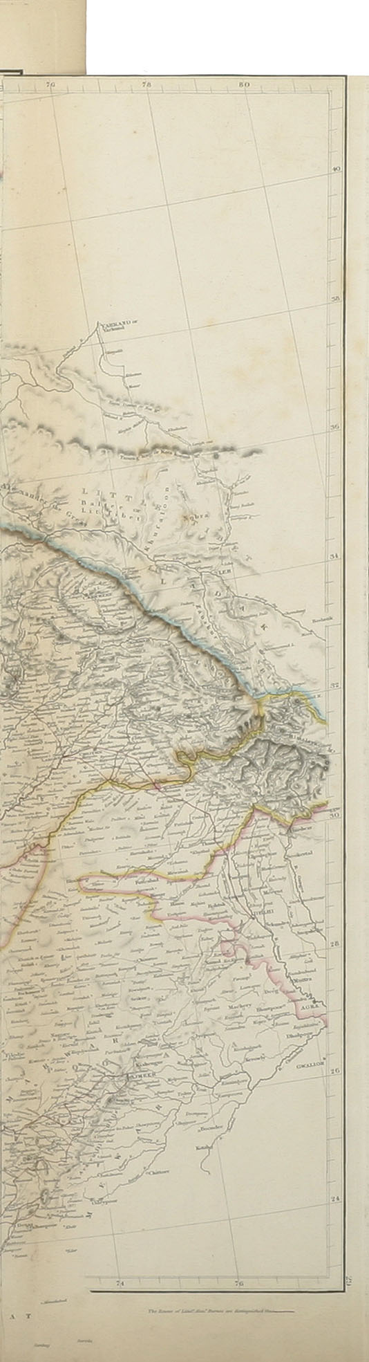 First edition dated 16th June 1834, by John Arrowsmith, of this important and detailed map of Central Asia extending from modern day Iraq to India based on the explorations of Captain Sir Alexander Burnes FRS (1805-1841) the Scottish explorer, military officer and diplomat associated, nicknamed Bokhara Burnes for his role in establishing contact with and exploring Bukhara. His memoir, Travels into Bokhara, was a bestseller when it was first published in 1835 without an accompanying map.