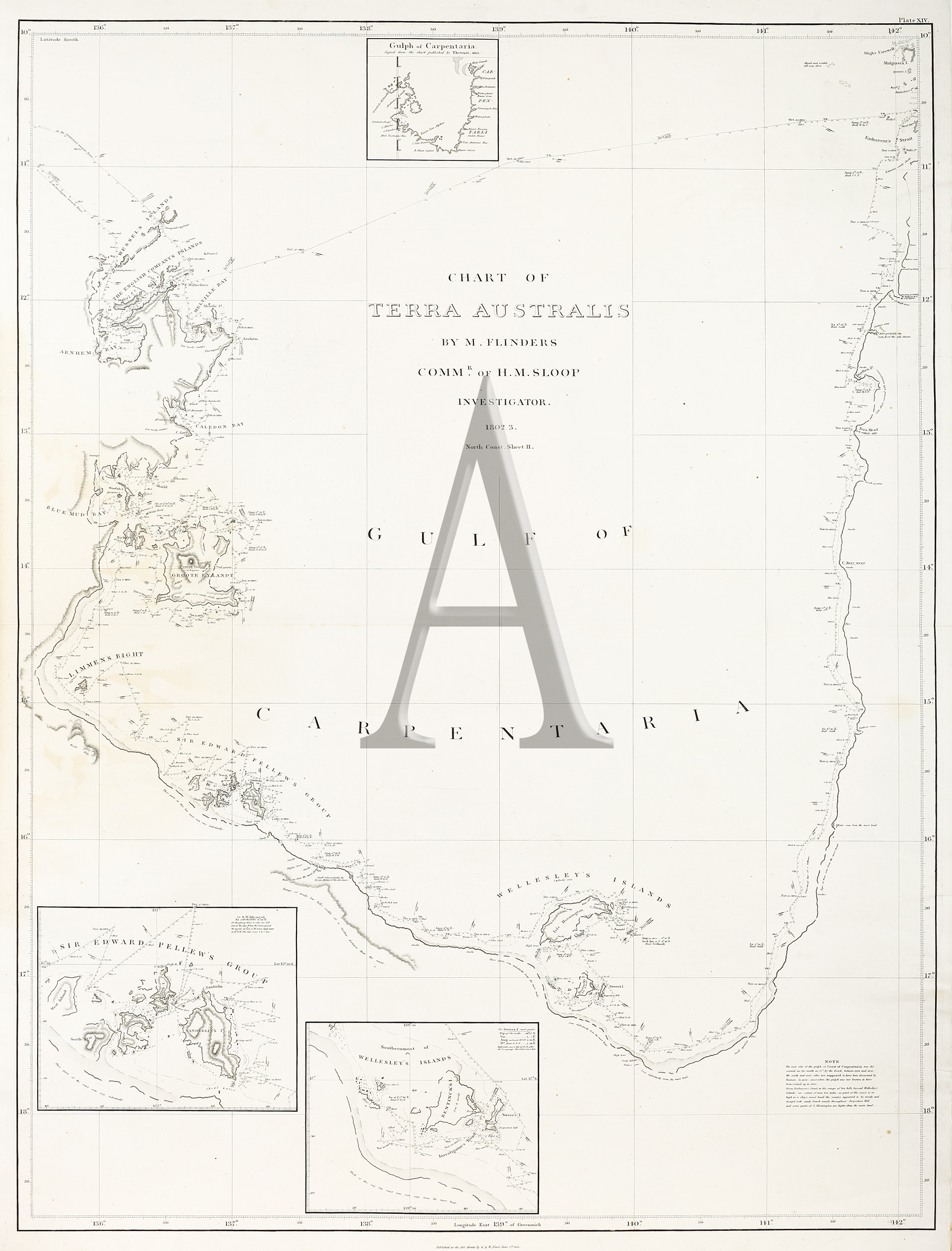 Chart no. XIV from Flinders, M.A., Voyage to Terra Australis; undertaken for the purpose of completing the discovery of that Vast Country,…. London 1814