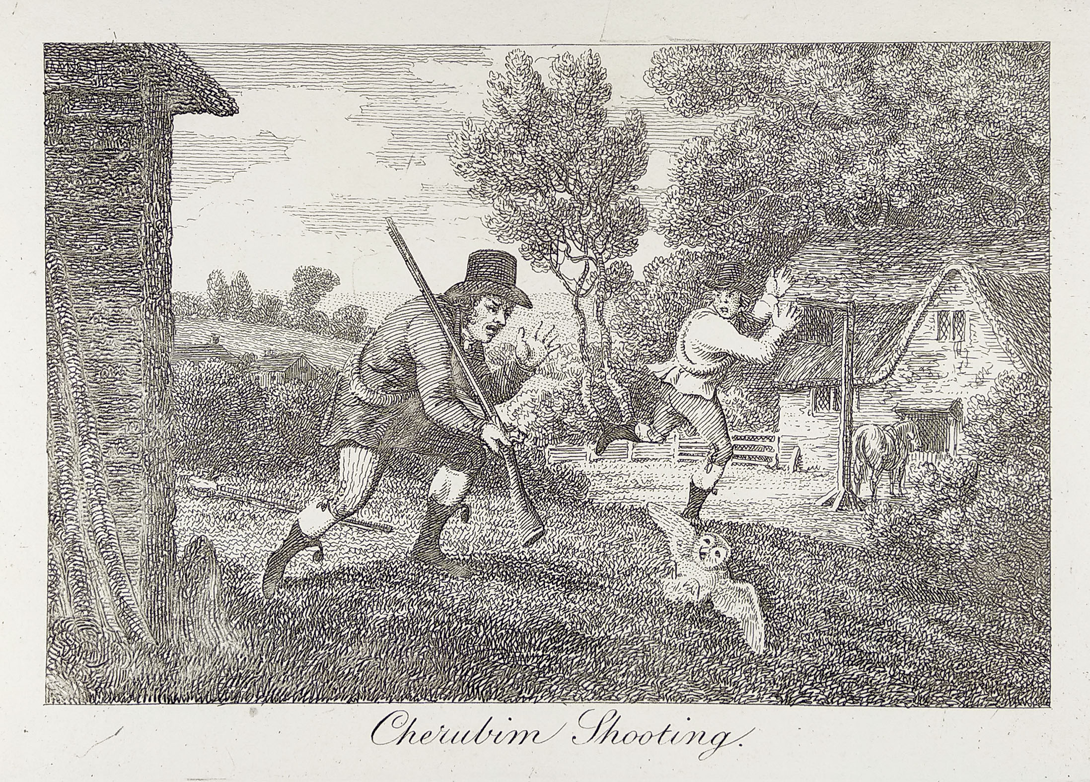 Engraving of two Cockneys on a shooting party who mistakenly shoot what they thought was a ‘Cherub’ and only find out it was an owl.