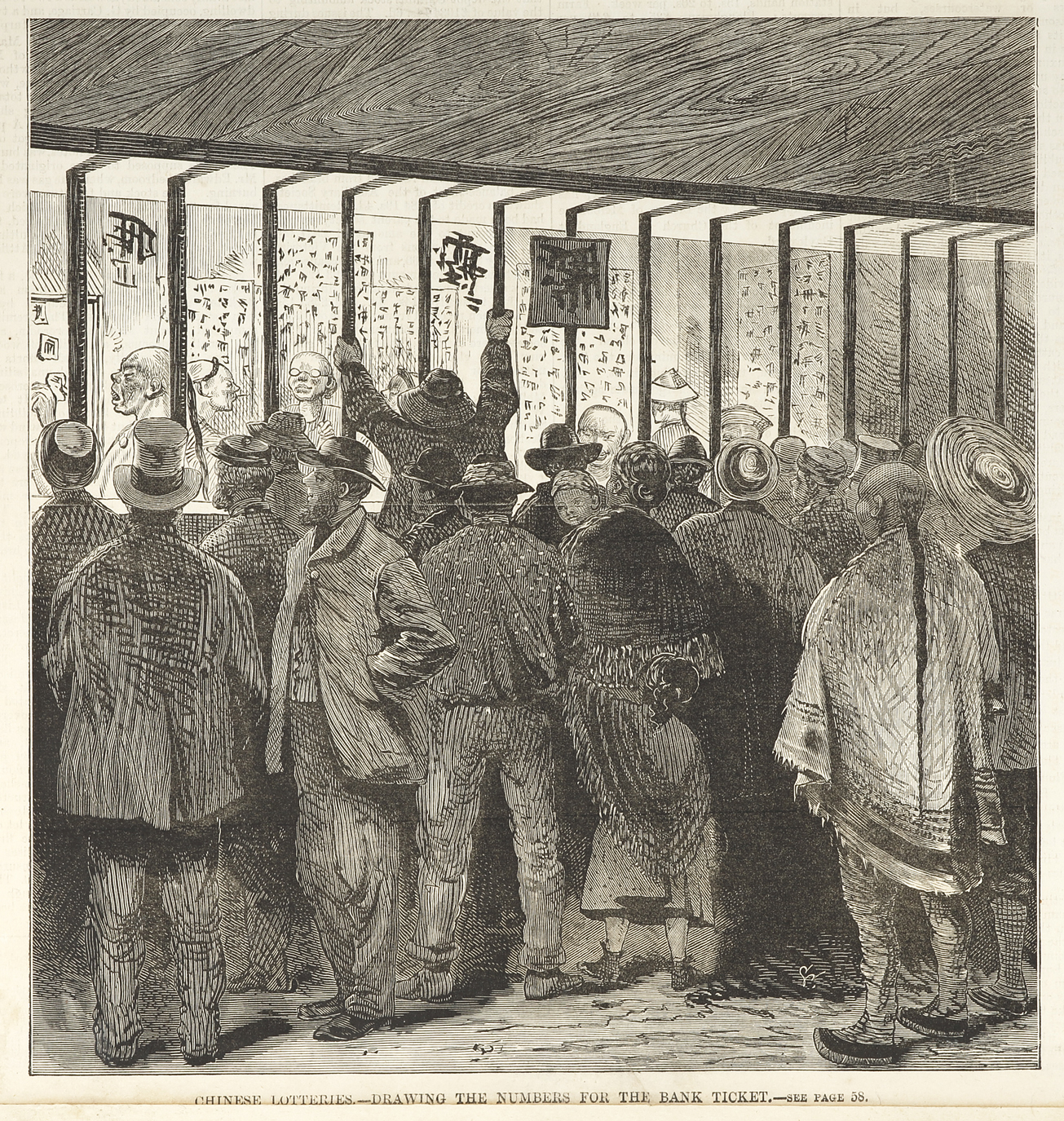 Rare engraving of Chinese conducting a lottery in Melbourne. From the original edition of the Illustrated Australian News.
