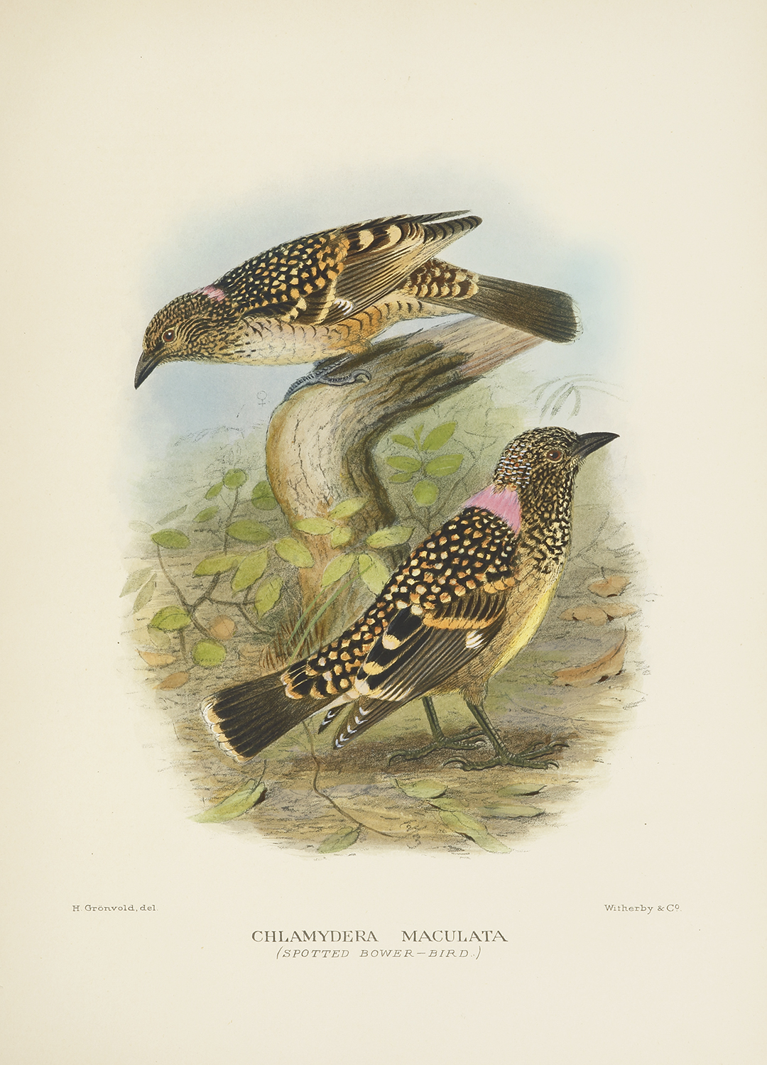 Gronvold was a Danish born artist who, after studying, entered the military as a draughtsman. On leaving Denmark he obtained work at the British History Museum in London. This image is from the last great bird series, The Birds of Australia by G. Matthews and is rarer than John Gould’s work on Australian birds, with only 225 sets done. It was the last series produced to use hand colouring rather than colour printed lithography for the illustrations.