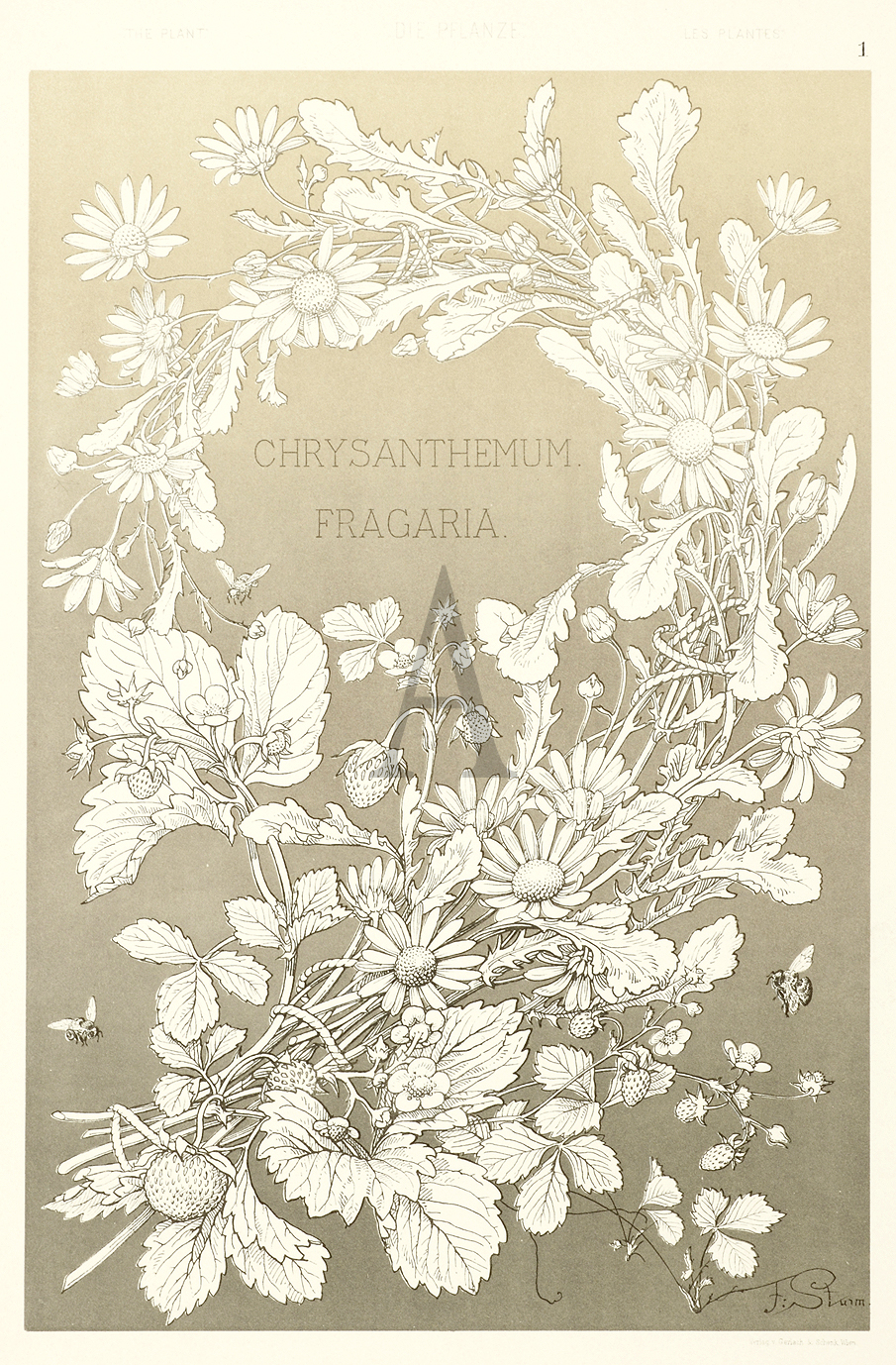 Art Nouveau botanical lithograph of Chrysathemums from the important series by Anton Seder, Die Pflanze in Kunst und Gewerbe (The plant in arts and crafts), Vienna. This series was highly influential to artists and craftsmen working in Vienna during the Art Nouveau period.
