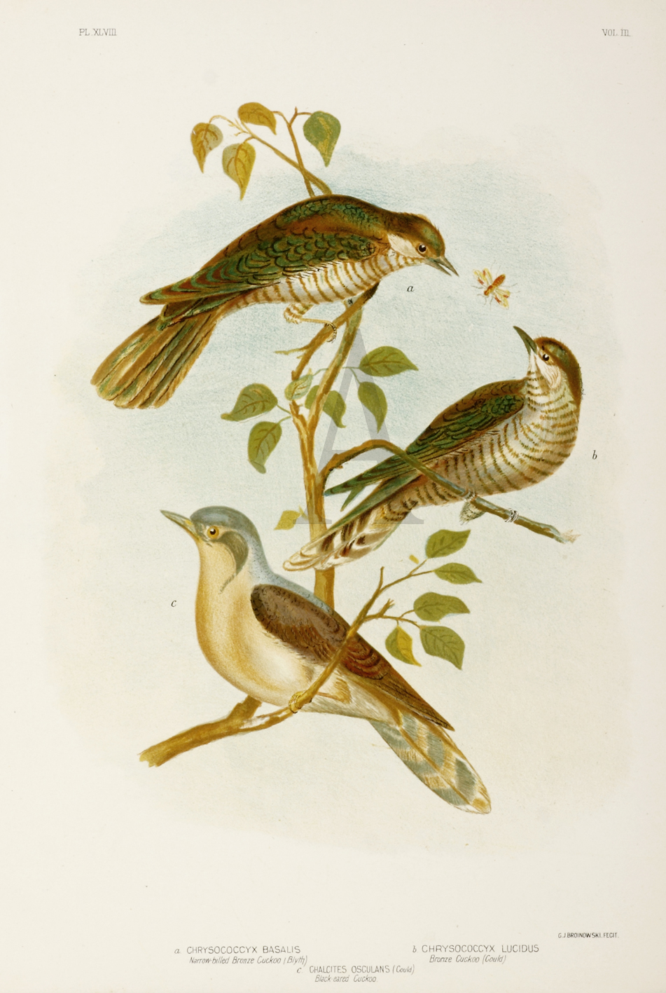 Lithograph of cuckoos from Broinowski’s, Birds of Australia.