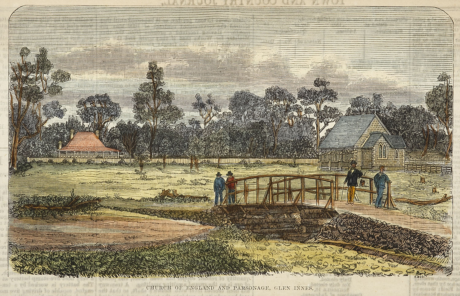 Rare colonial engraving of Church of England, Glen Innes, New South Wales.