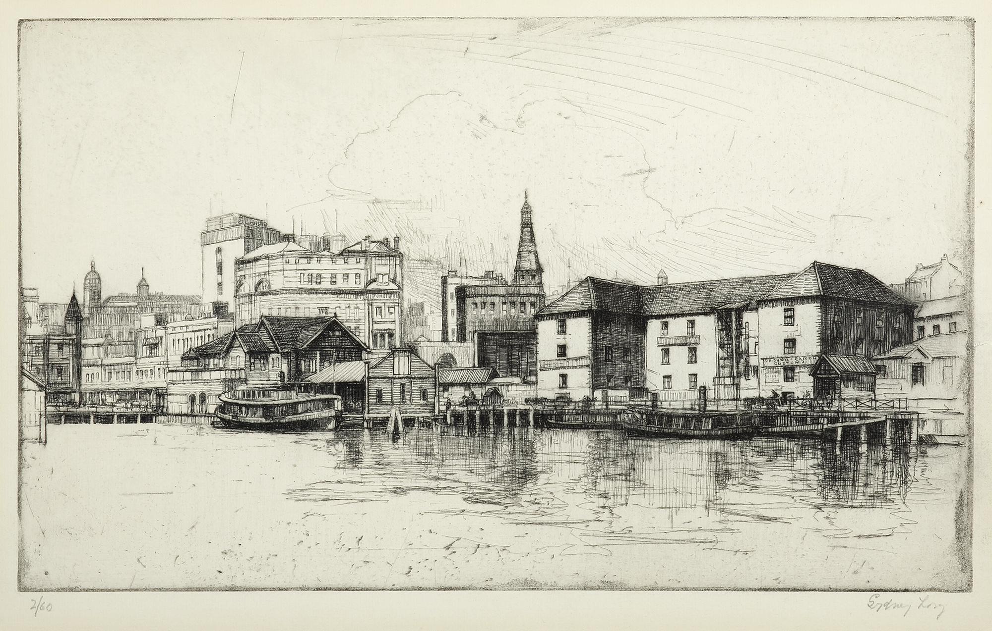 Scarce Sydney Long etching of Circular Quay, Sydney, numbered 2 from the edition of 60, titled signed in pencil.