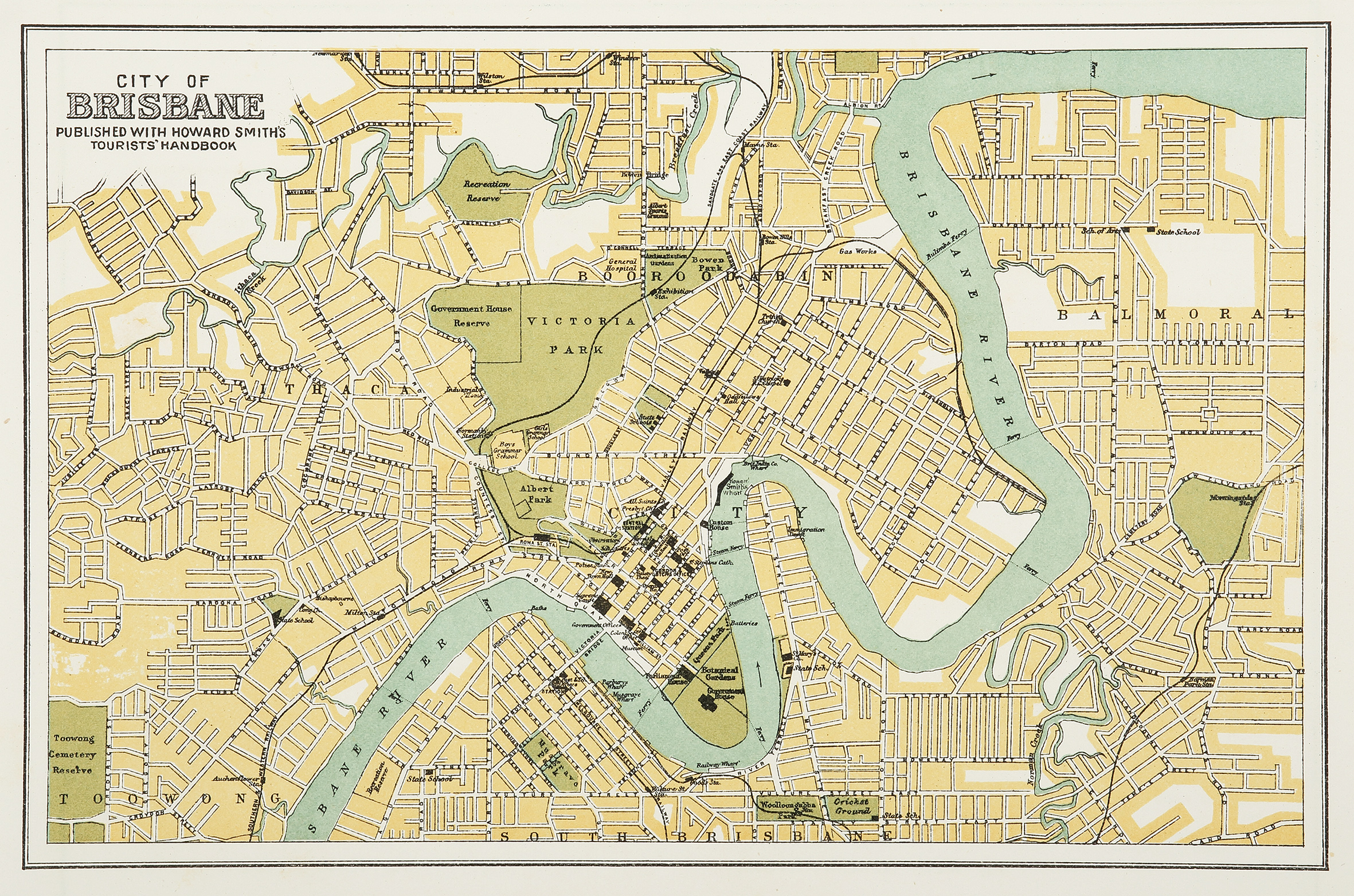Detailed early c.20th map of inner Brisbane. Collections: National Library Australia: Bib ID: 2469059 State Library New South Wales: 991019814759702626 State Library Victoria: RARELT 919.4 M14T State Library South Australia: 994T M135 State Library Queensland: 92542264702061 State Library of Western … Read Full Description