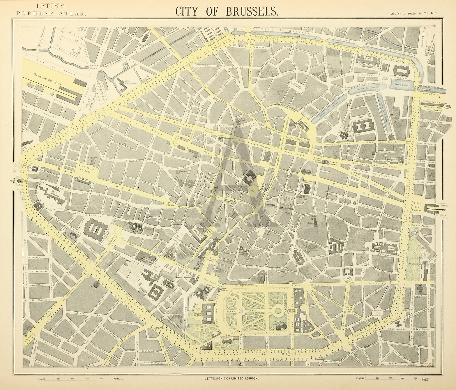 Detailed town plan of Brussels, from Lett’s Popular Atlas publishedÂ