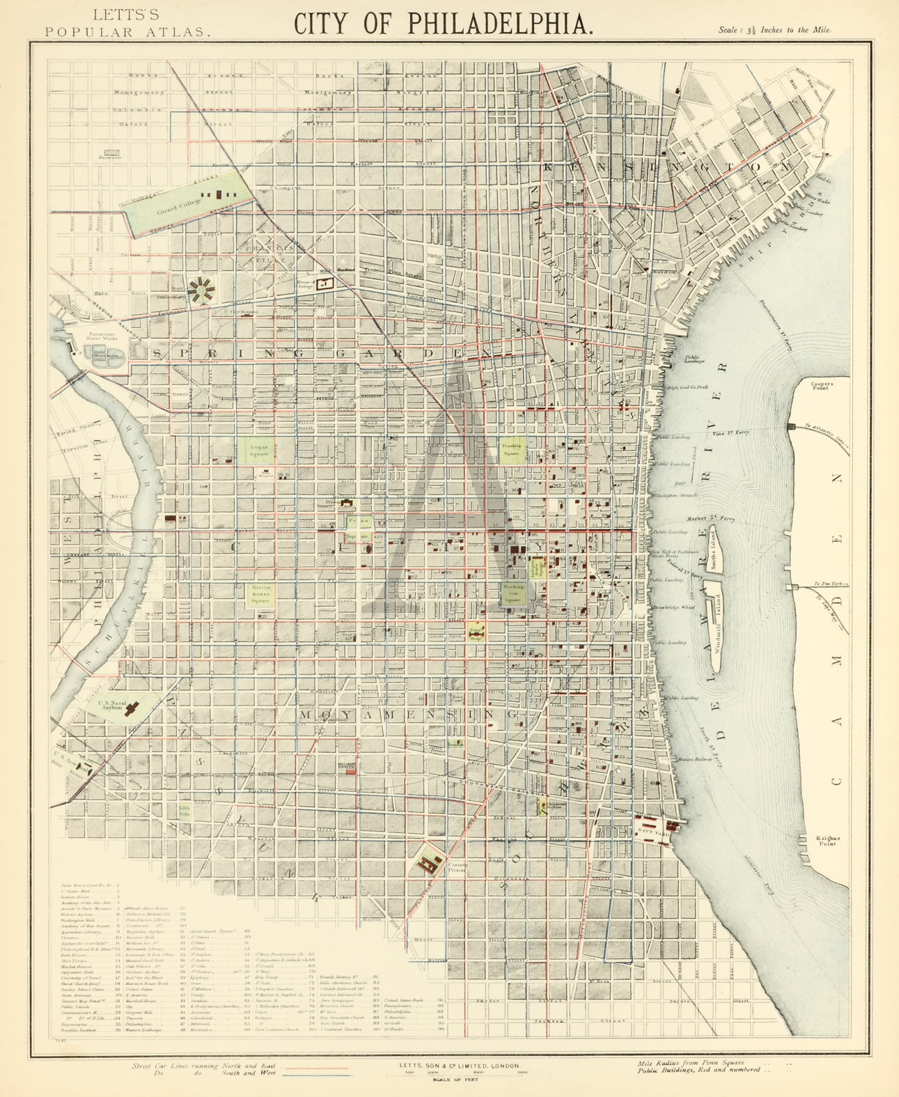 Detailed town plan of Philadelphia, from Lett’s Popular Atlas published