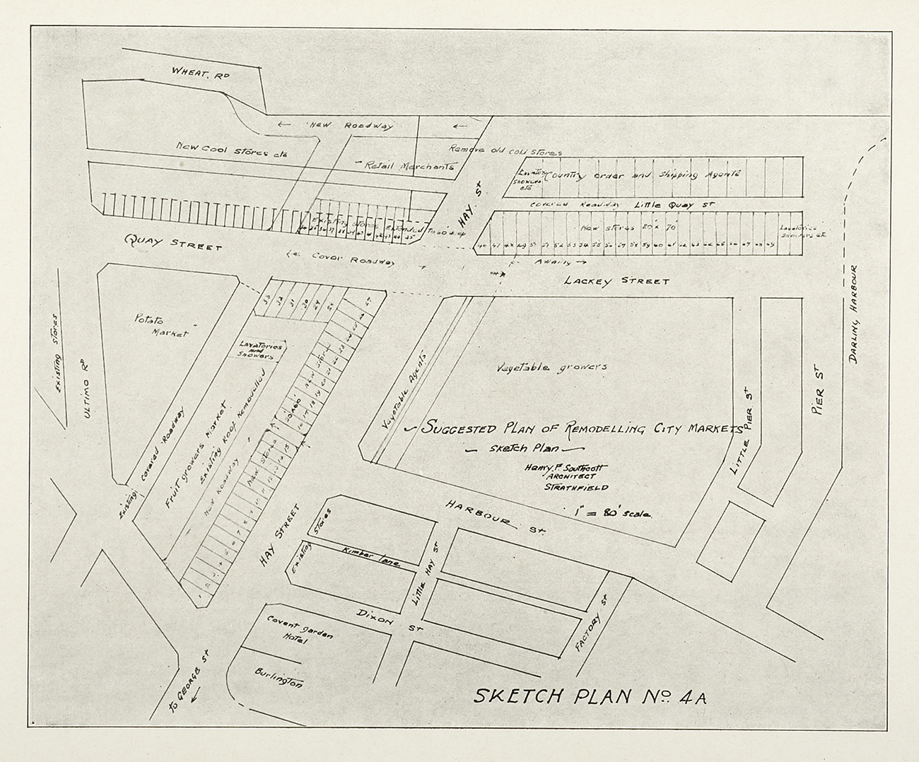 4. Amalgamation of Markets Nos. 1, 2 & 3 & portion of Quay St. Areas under the control of the Markets Branch edged Red.