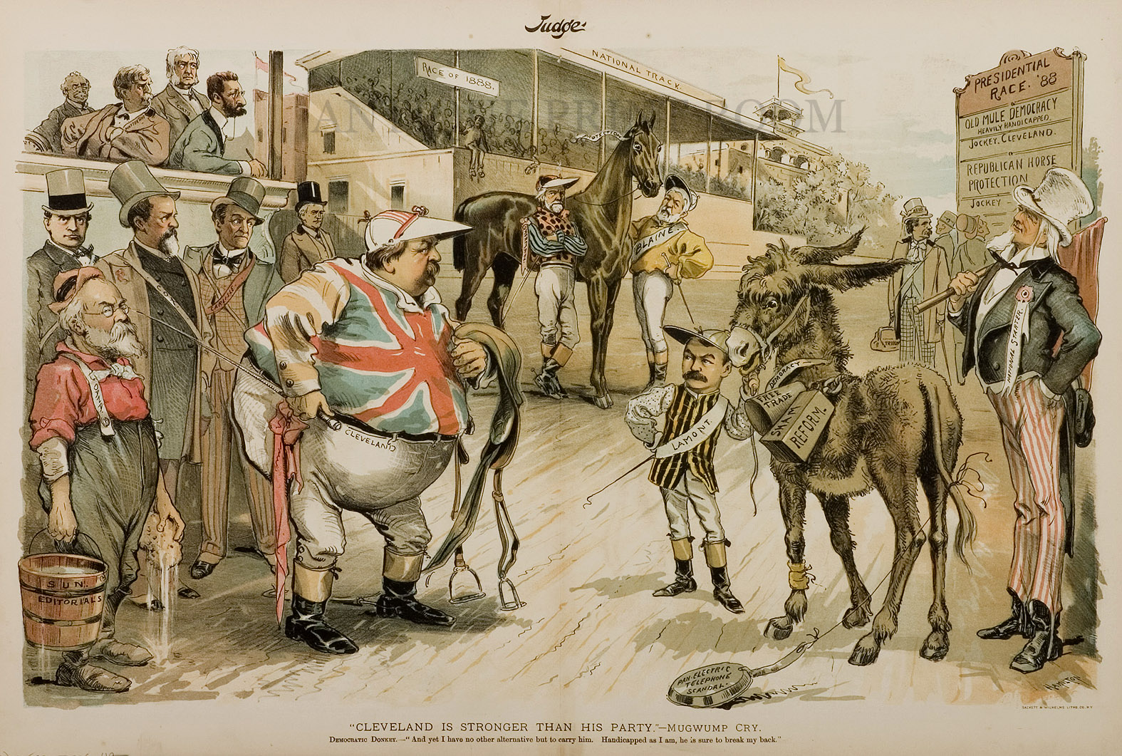 "Cleveland is Stronger than his Party "- Mugwump Cry - Antique Print from 1890