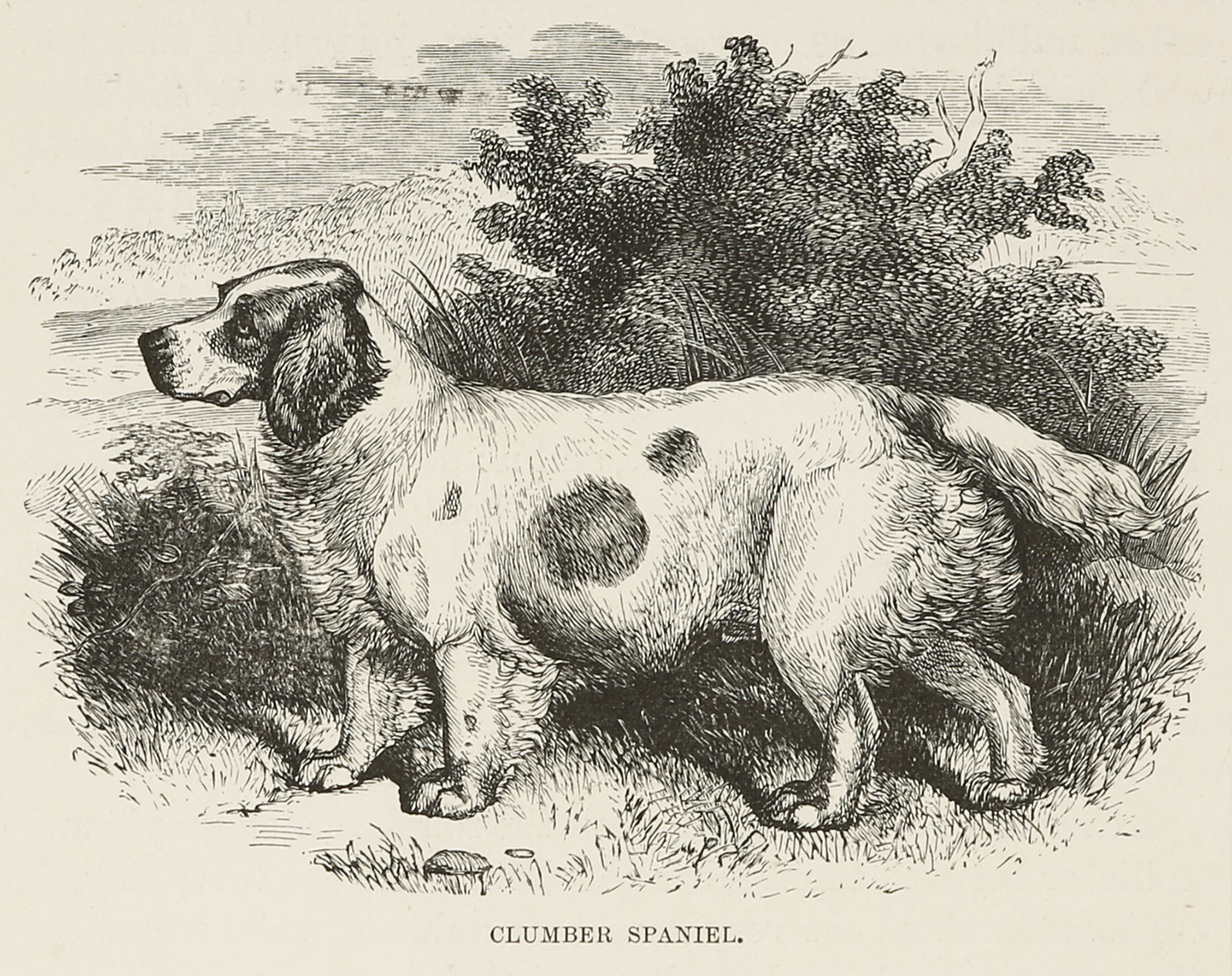 C19th engraving of a Clumber Spaniel.