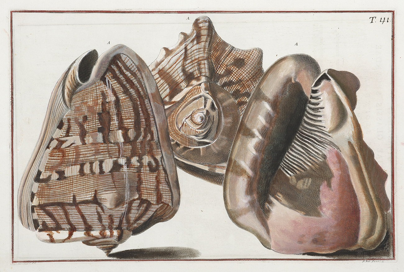 Fabulous c.18th engraving of shells from a watercolour by Giuseppe Menabuoni (1708-1745) and engraved by Antonio Pazzi (1701-1776). From Niccolo Gualtieri’s, Index Testarum Conchyliorum. Collections: Museums Victoria Collections: ark:/13960/s2q8k75p5wj Library of Congress Washington D.C.: LC control no. nr 00015211 Bibliotheque Nationale … Read Full Description