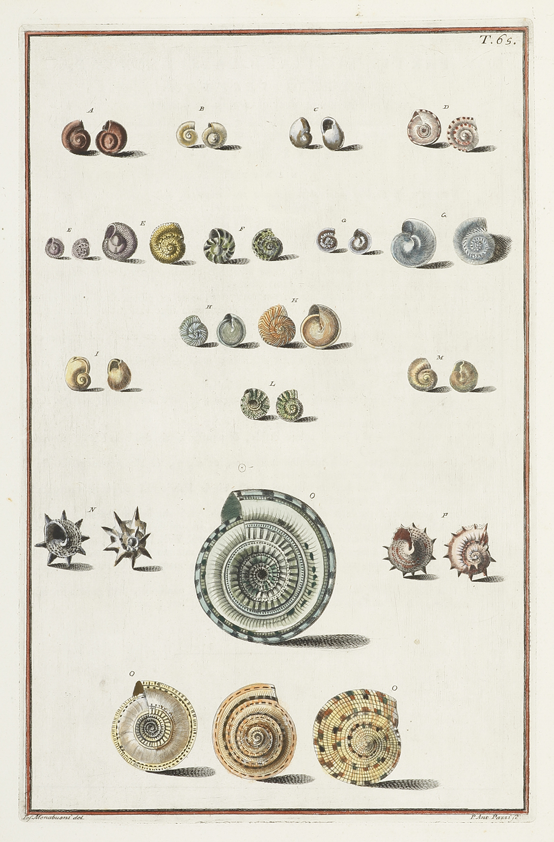 Fabulous c.18th engraving of shells from a watercolour by Giuseppe Menabuoni (1708-1745) and engraved by Antonio Pazzi (1701-1776).